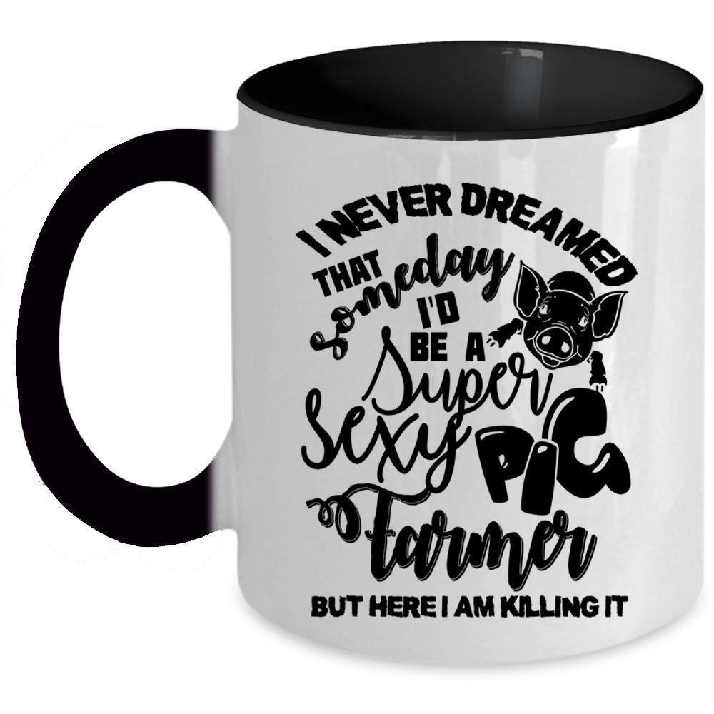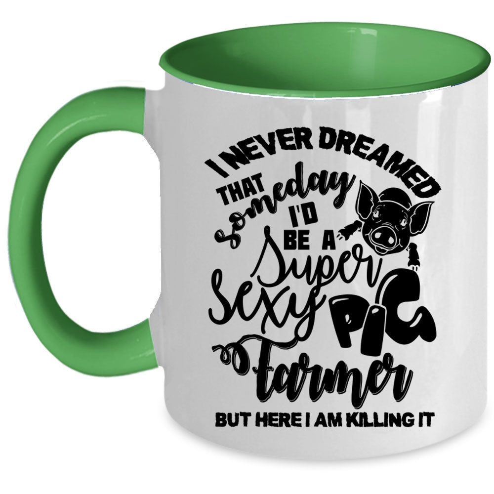 I Love Pigs Coffee Mug, I'd Be A Pig Farmer Accent Mug