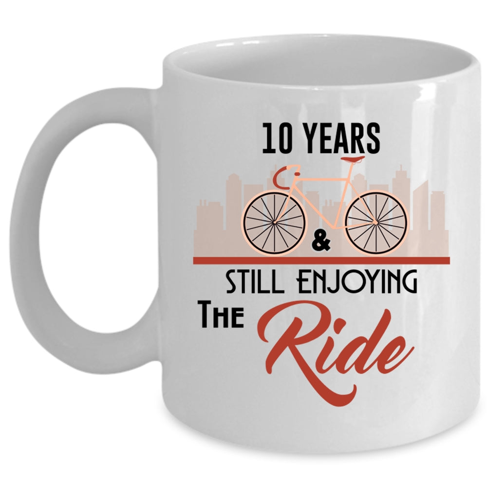 I Love Riding Coffee Mug, 10 Years And Still Enjoying The Ride Cup