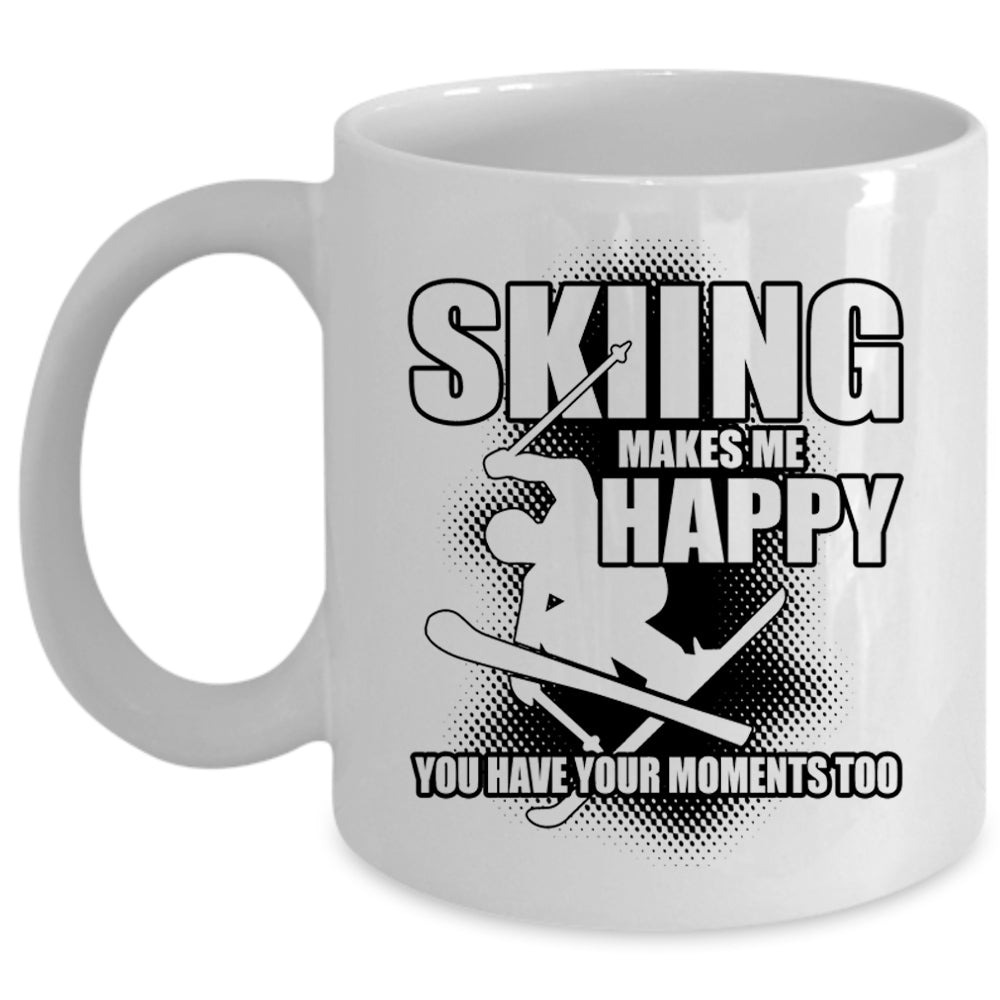 I Love Skiing Coffee Mug, Skiing Makes Me Happy Cup