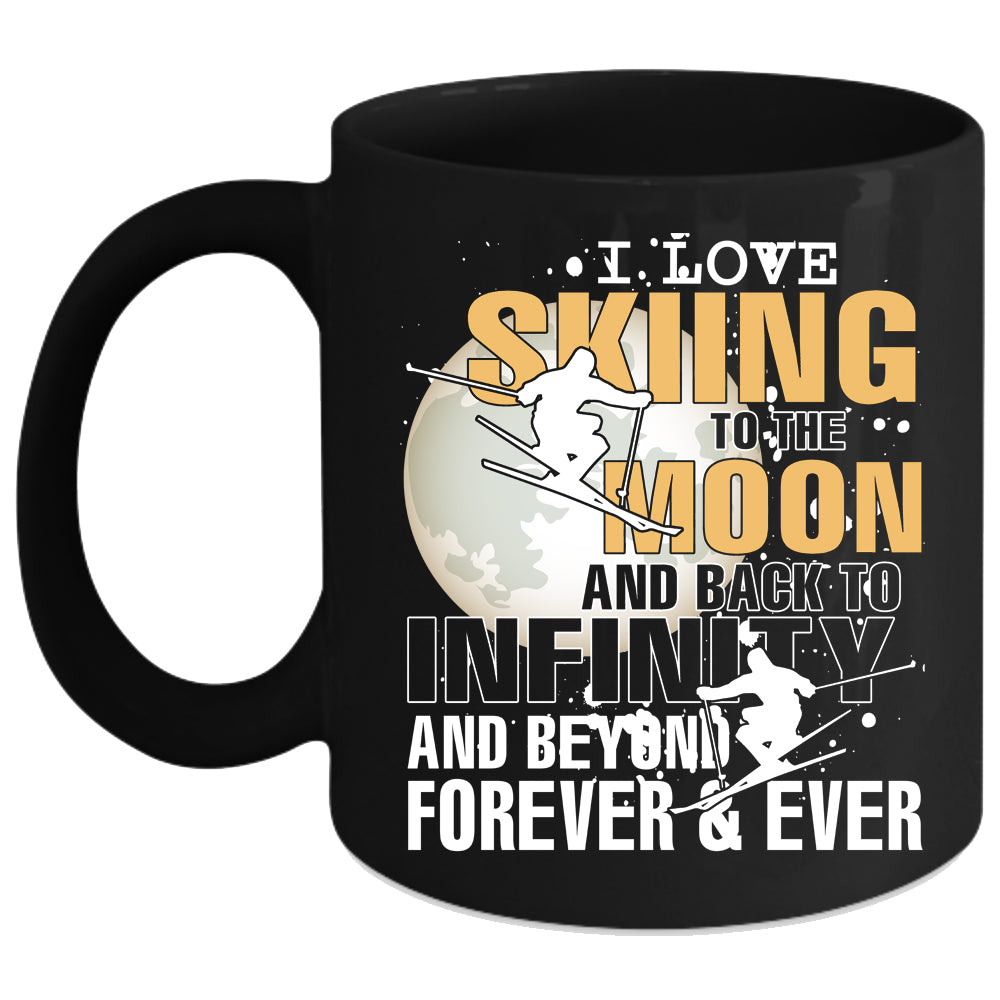 I Love Skiing To The Moon And Back Coffee Mug, Funny Sport Coffee Cup