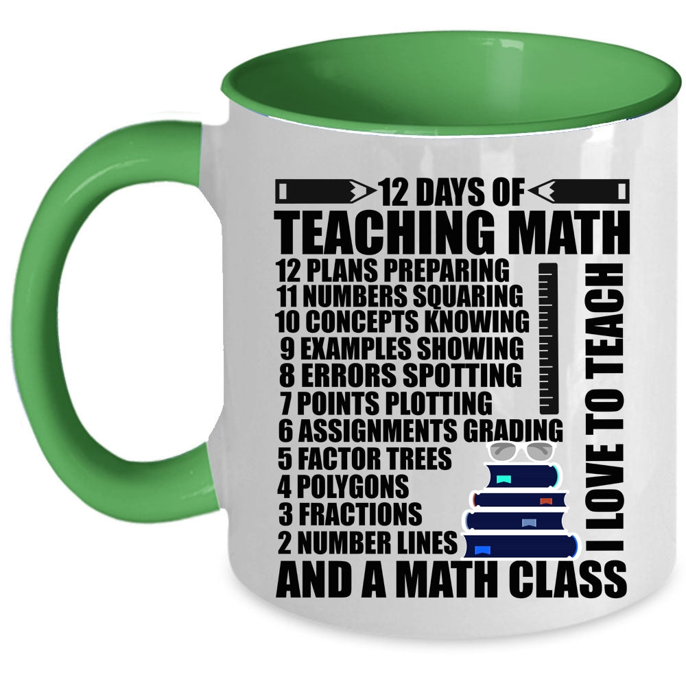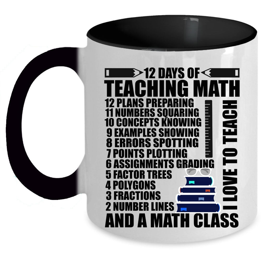 I Love To Teach And A Math Class Coffee Mug, 12 Days Of Teaching Math Accent Mug