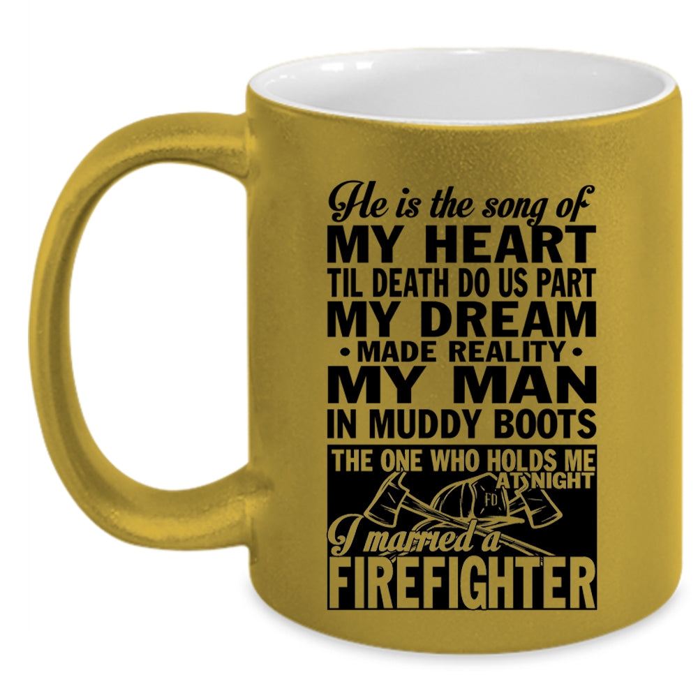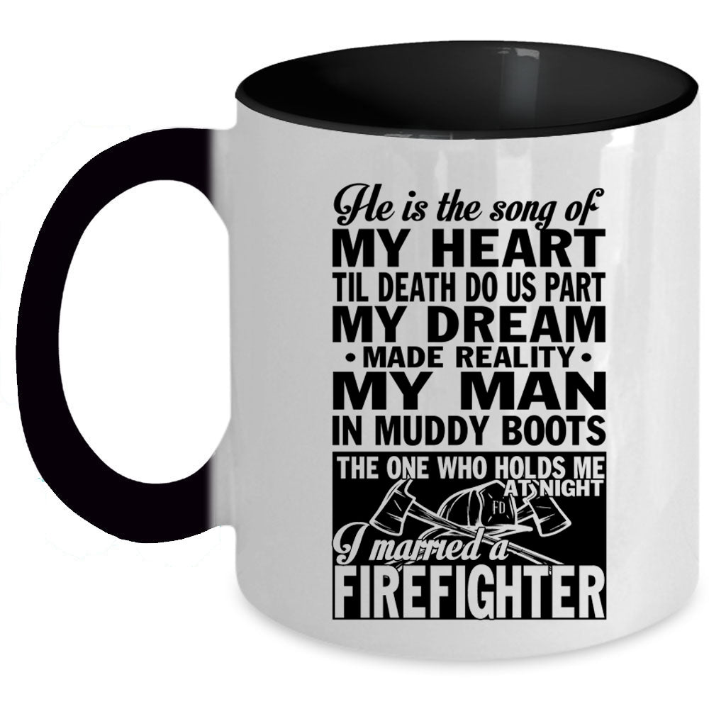 I Married A Firefighter Coffee Mug, He Is The Song Of My Heart Accent Mug