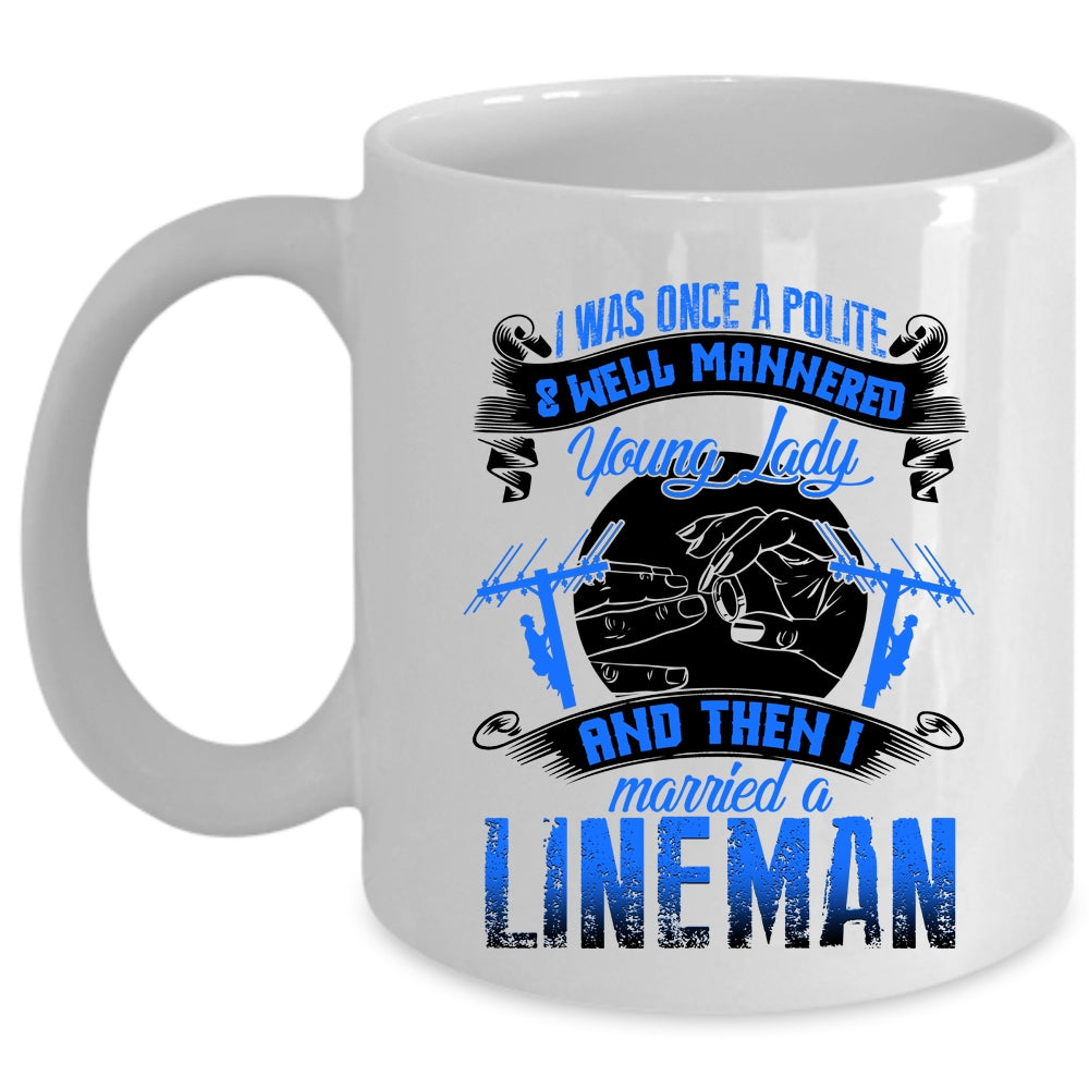 I Married A Lineman Coffee Mug, Police And Well Mannered Young Lady Cup