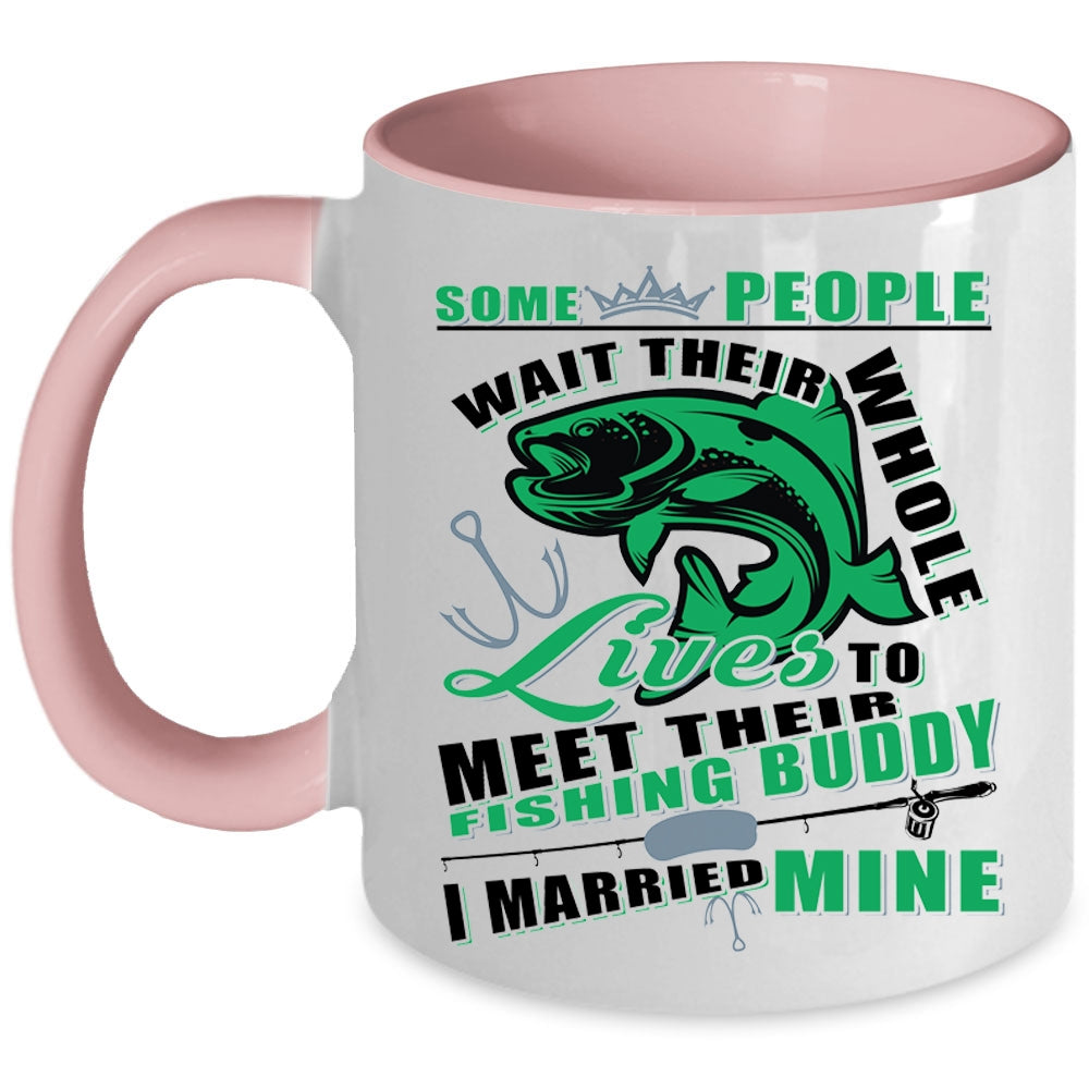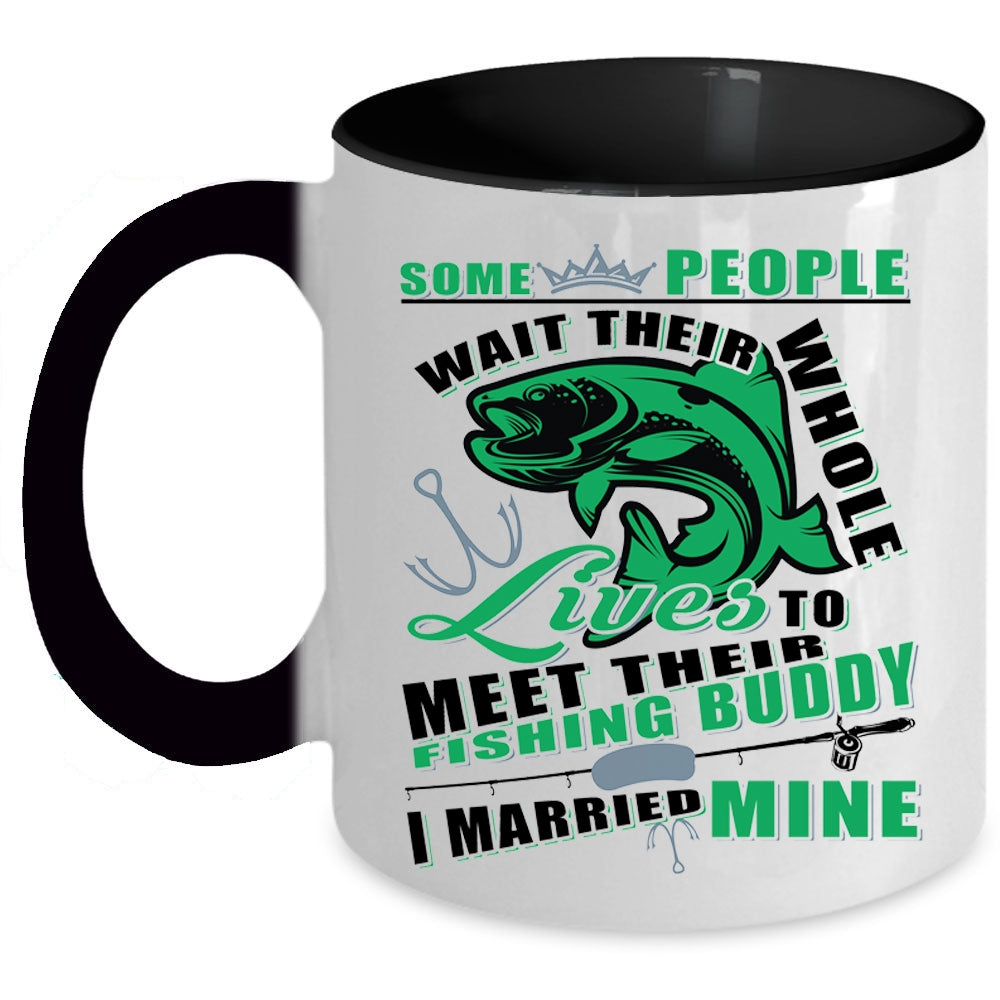 I Married Mine Coffee Mug, Lives To Meet Their Fishing Buddy Accent Mug