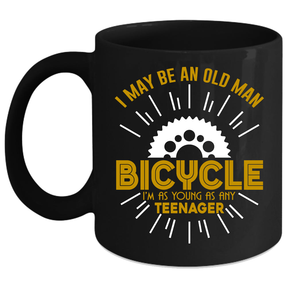 I May Be An Old Man Bicycle Coffee Mug, I'm As Young As Any Teenager Coffee Cup