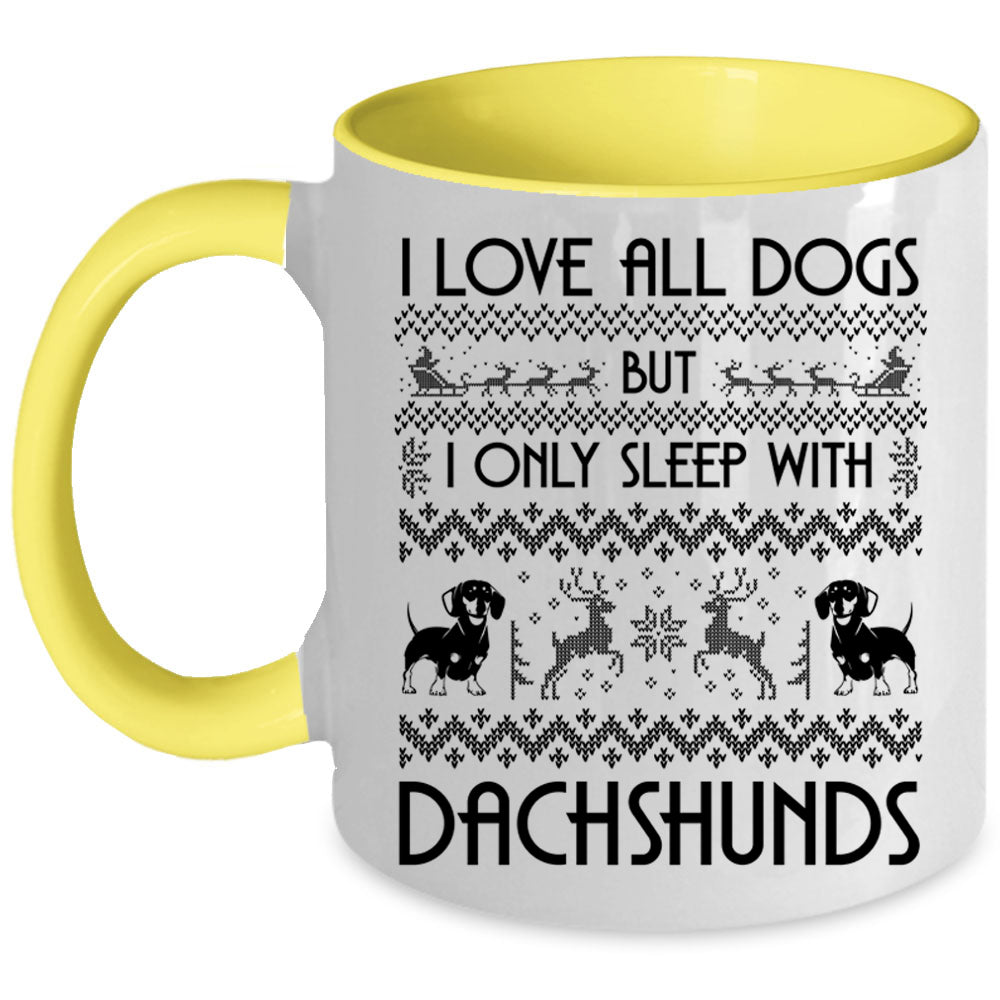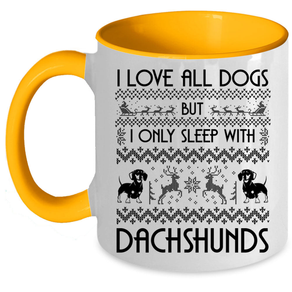 I Only Sleep With Dachshunds Coffee Mug, I Love All Dogs Accent Mug