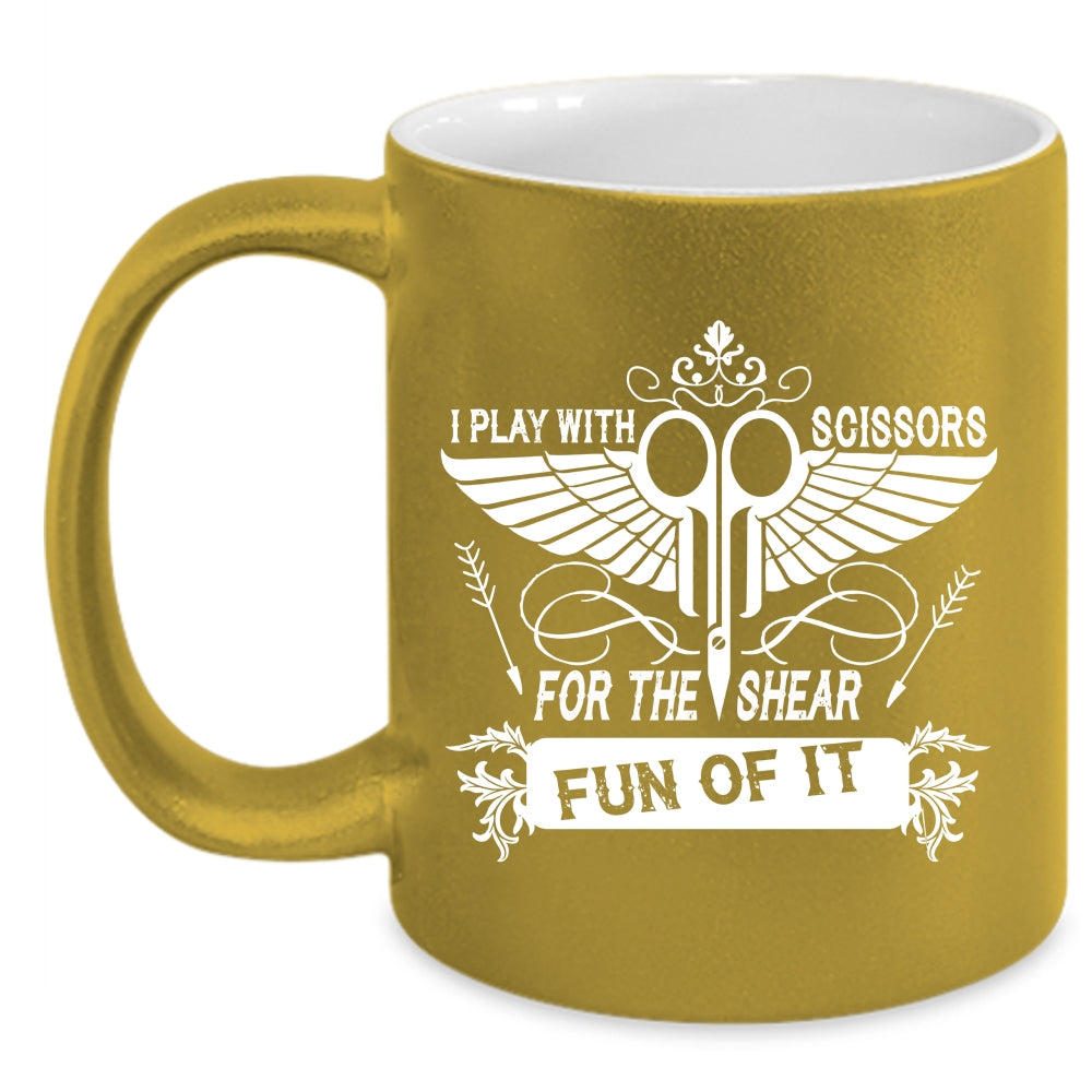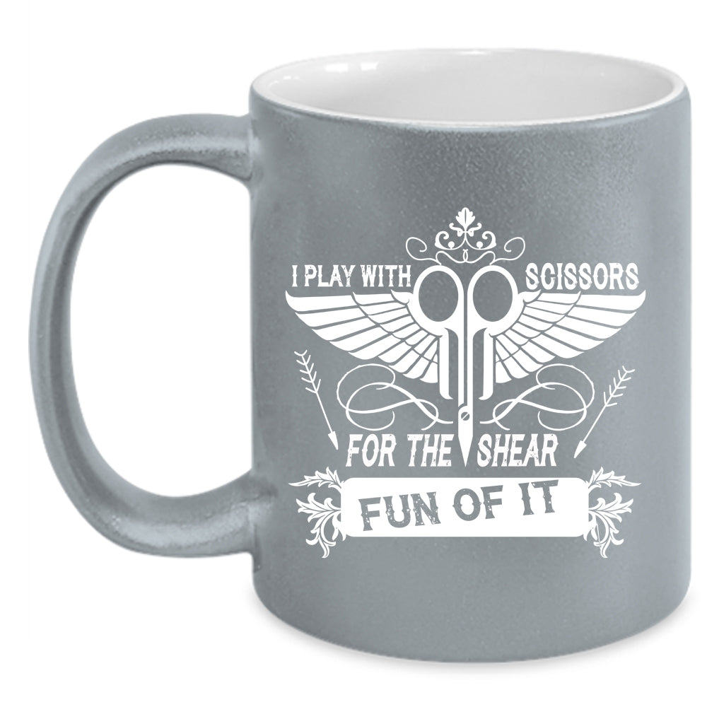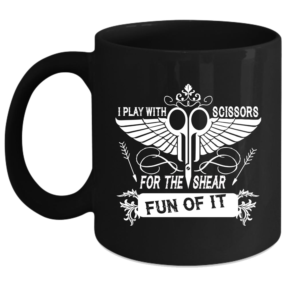 I Play With Scissors For The Shear Fun Of It Coffee Mug, Funny Hairstylist Coffee Cup
