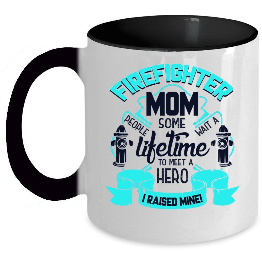 I Raise A Firefighter Mom Coffee Mug, Firefighter Mom Accent Mug