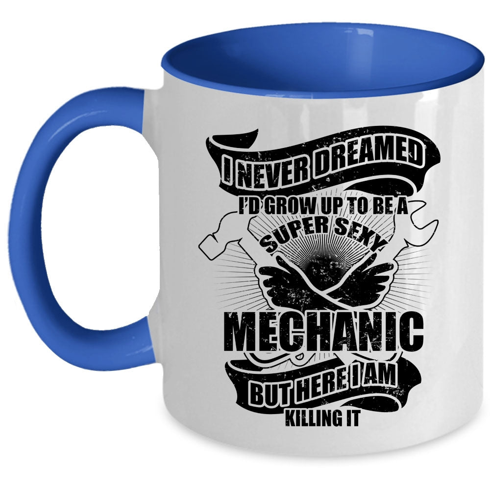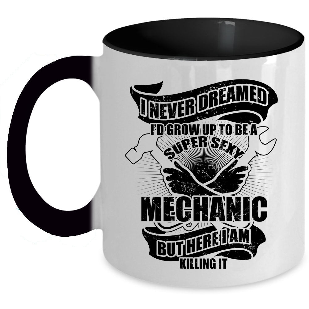 I Raise A Mechanic Coffee Mug, I'd Grow Up To Be A Mechanic Accent Mug