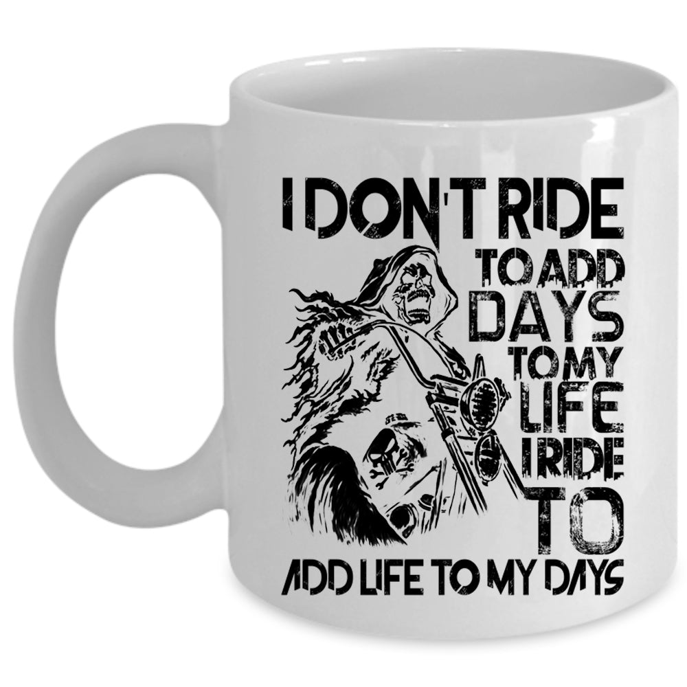 I Ride To Add Life To My Days Coffee Mug, I Don't Ride To Add Days To My Life Cup