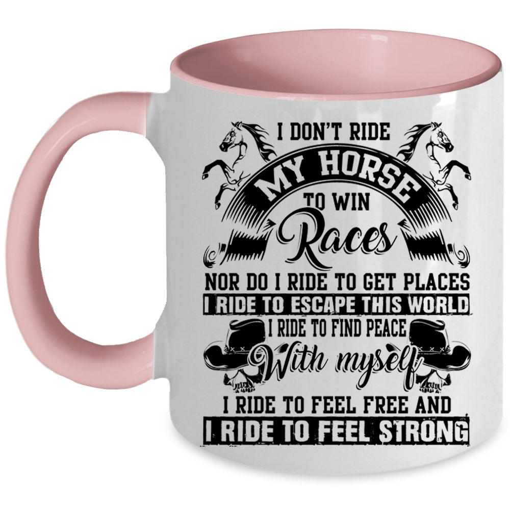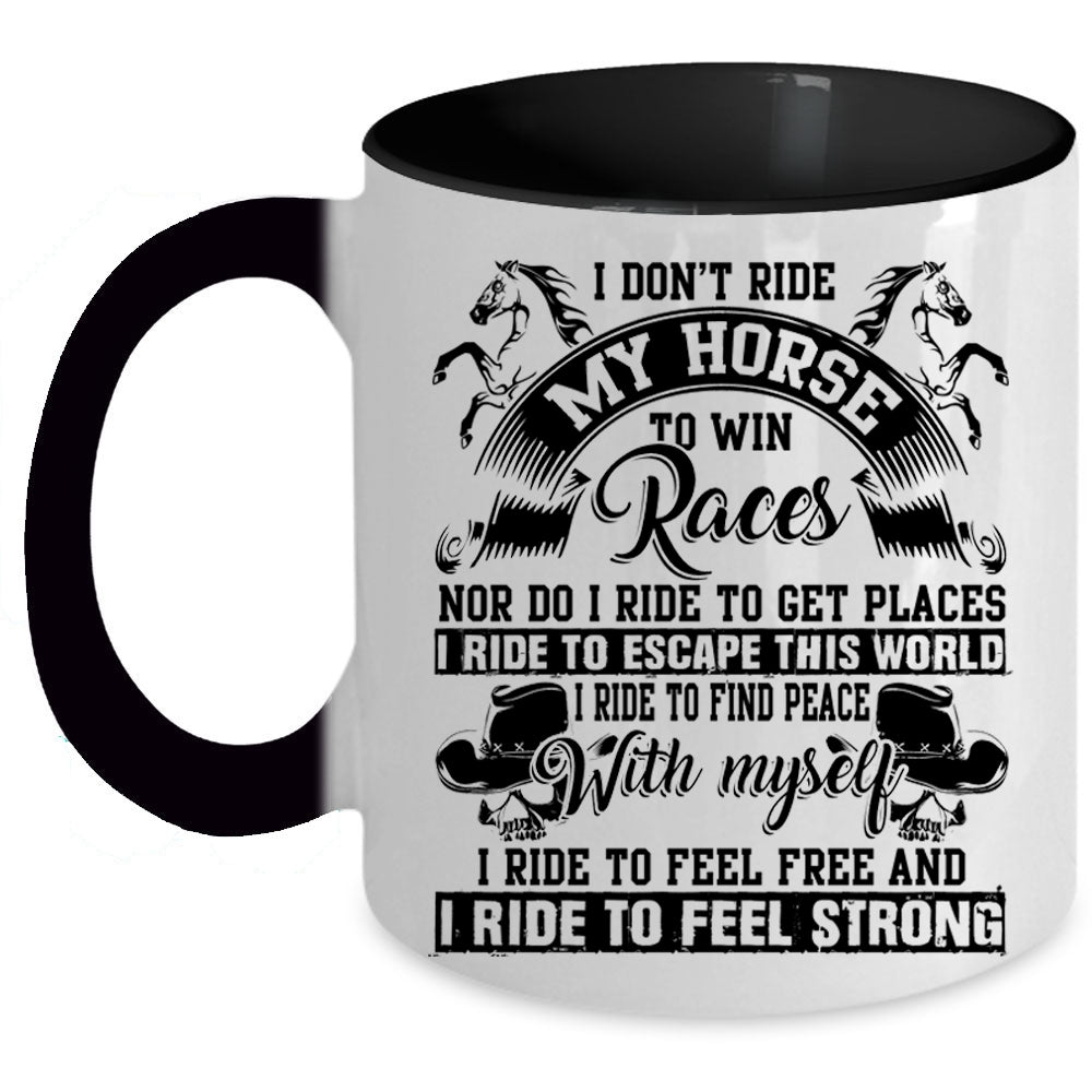I Ride To Feel Strong Coffee Mug, I Don't Ride My Horse To Win Accent Mug