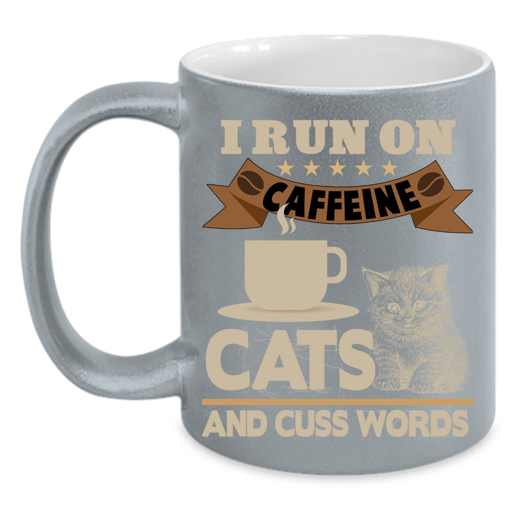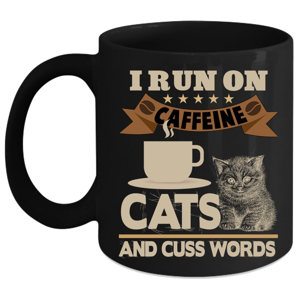 I Run On Caffeine Cats Coffee Mug, Funny Coffee Cup