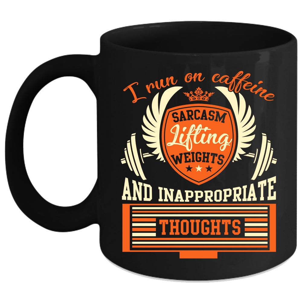 I Run On Caffeine Sarcasm Coffee Mug, Lifting Weights Coffee Cup