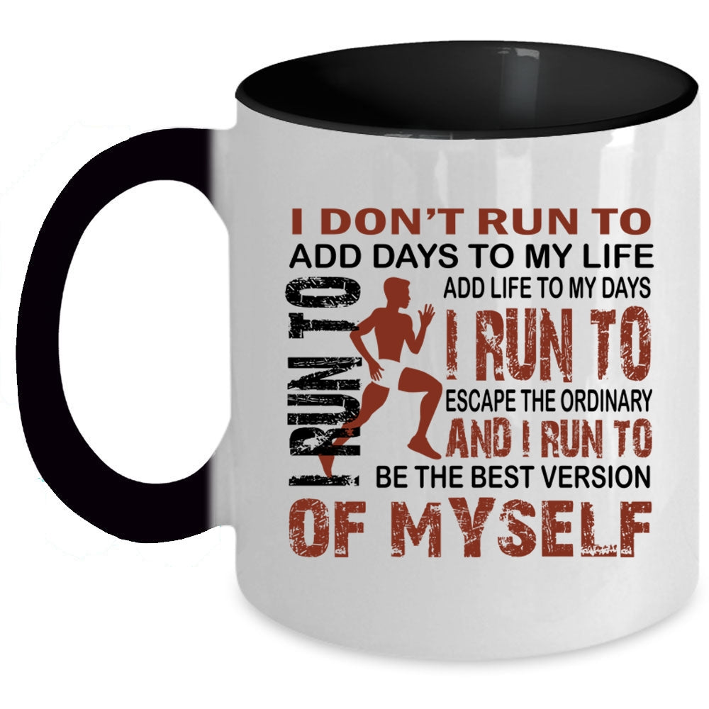 I Run To Add Life To My Days Coffee Mug, I Don't Run To Add Days To My Life Accent Mug