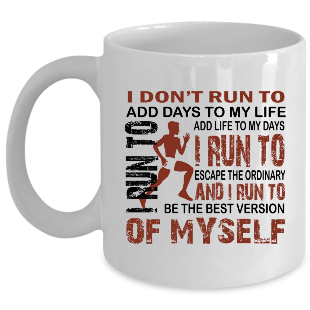 I Run To Add Life To My Days Coffee Mug, I Don't Run To Add Days To My Life Cup