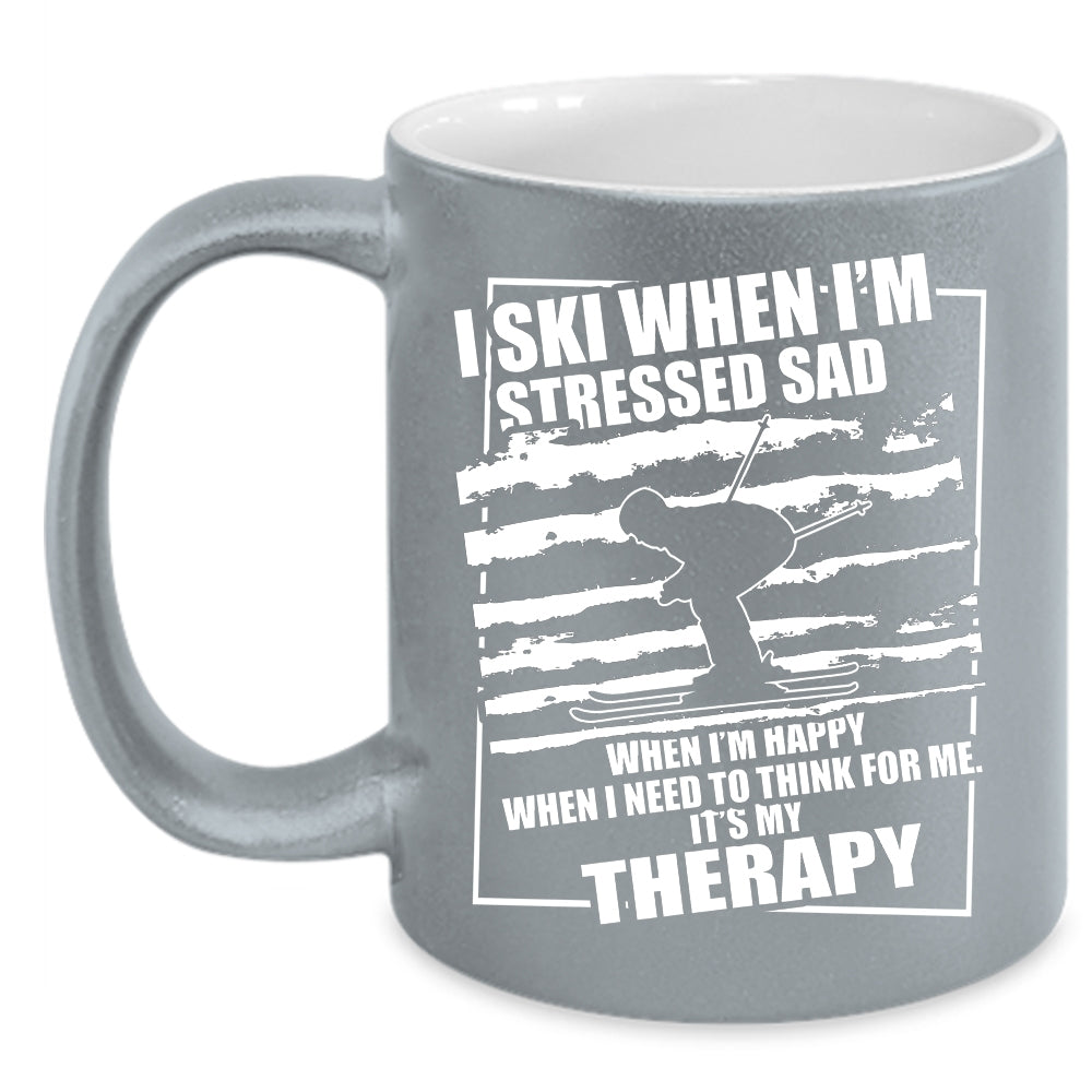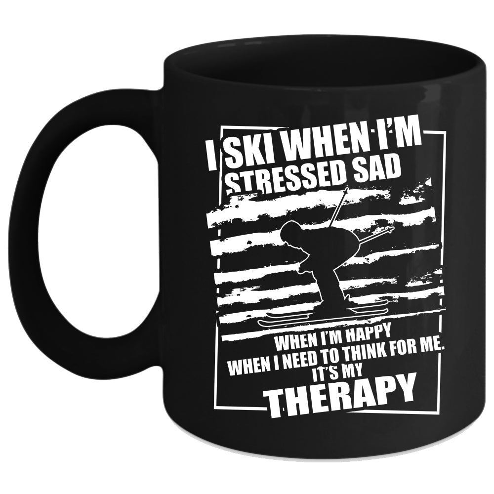 I Ski When I'm Stressed Sad Coffee Mug, Funny Skiing Coffee Cup