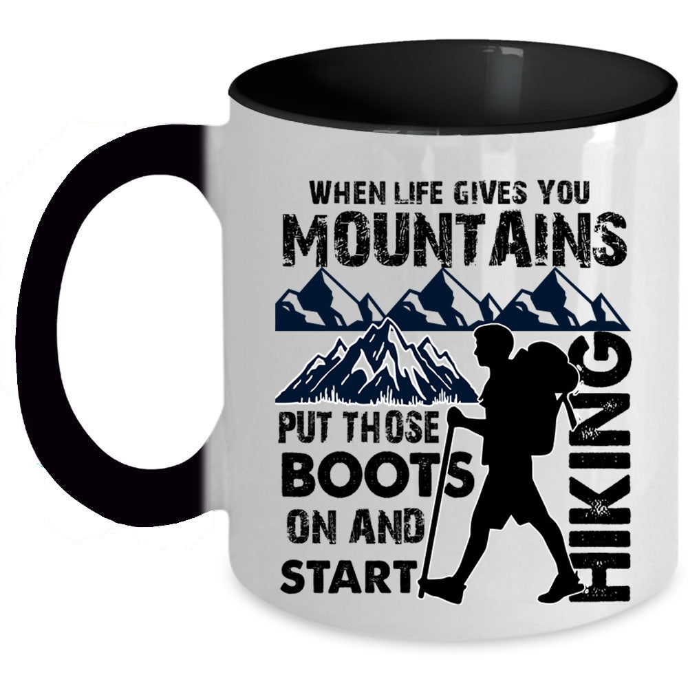 I Start Hiking Coffee Mug, When Life Gives You Mountains Accent Mug
