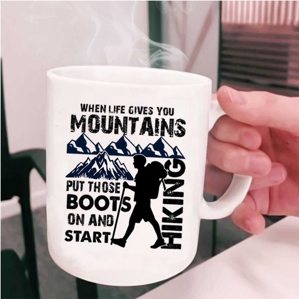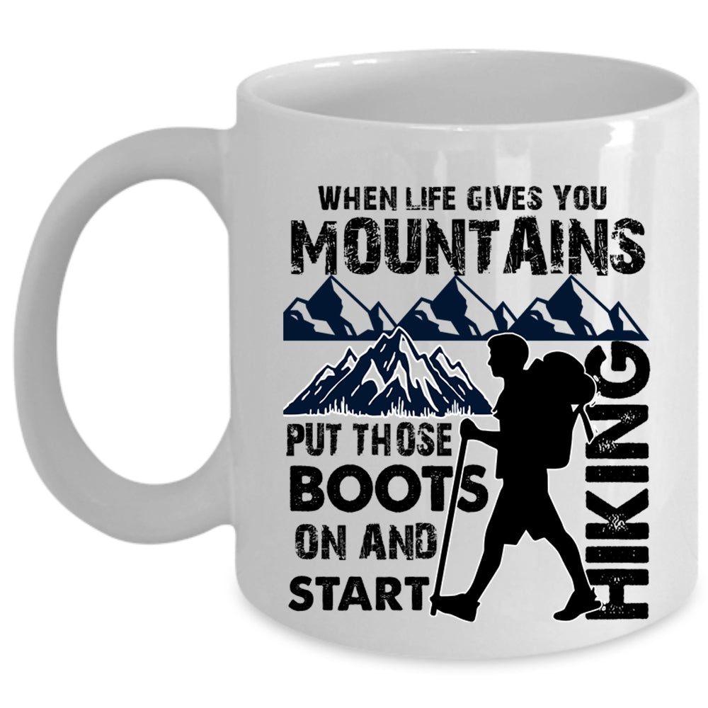 I Start Hiking Coffee Mug, When Life Gives You Mountains Cup