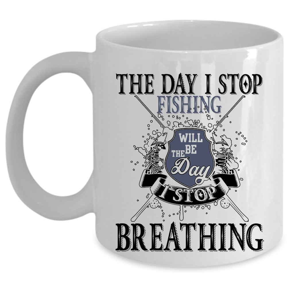 I Stop Breathing Coffee Mug, I Stop Fishing Cup