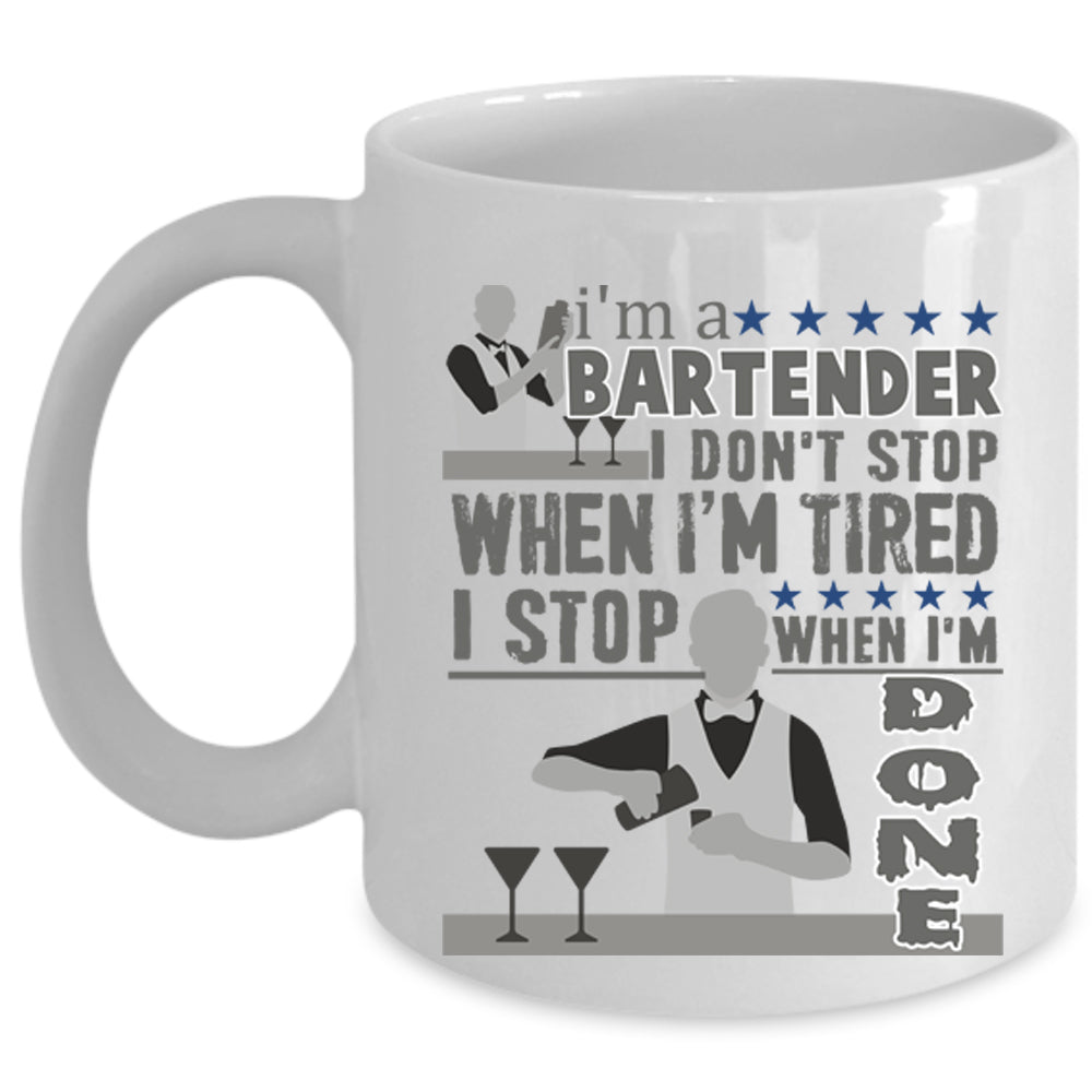 I Stop When I'm Done Coffee Mug, I'm A Bartender Cup