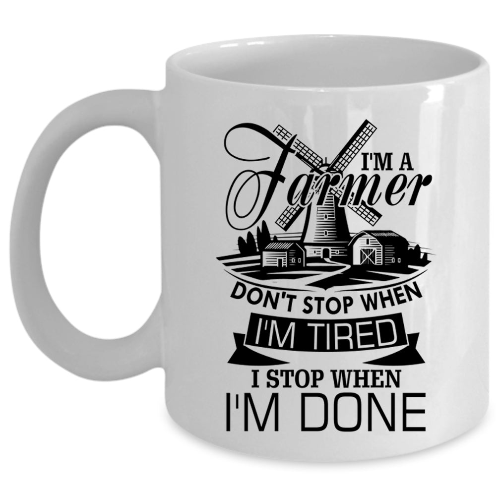 I Stop When I'm Done Coffee Mug, I'm A Farmer Cup