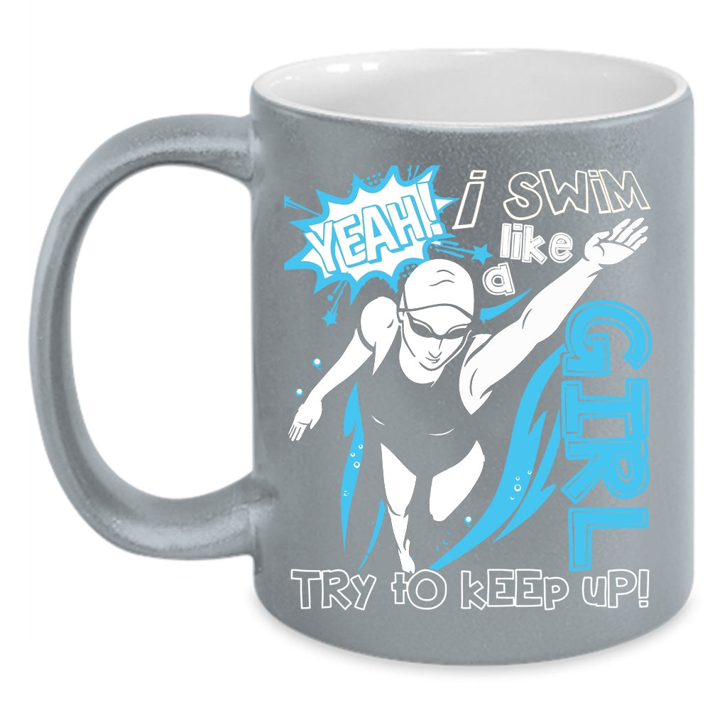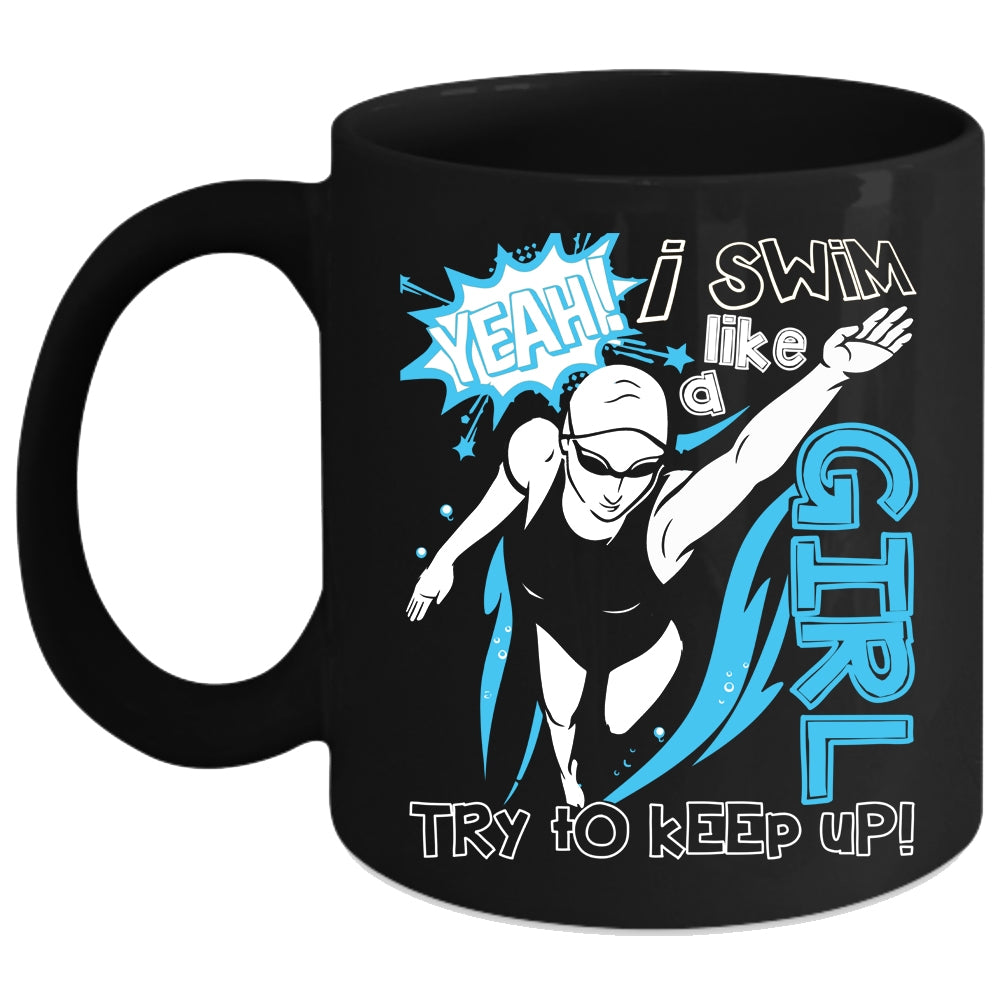 I Swim Like A Girl Coffee Mug, Funny Gift For Swimmer Coffee Cup