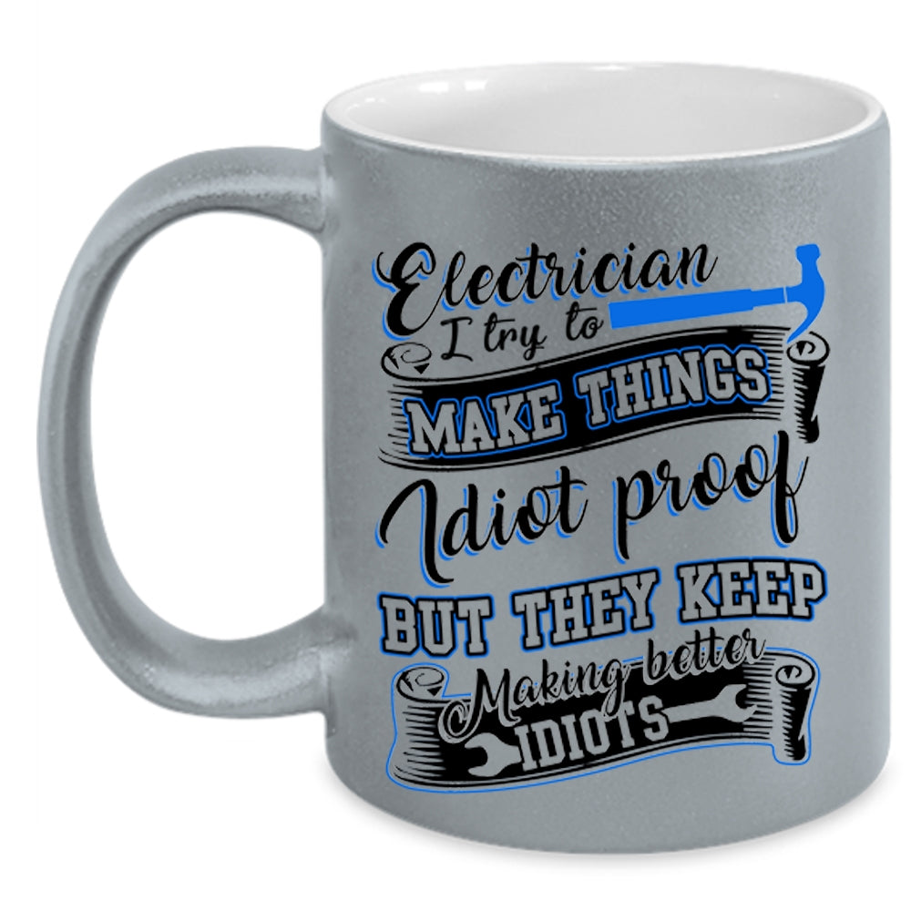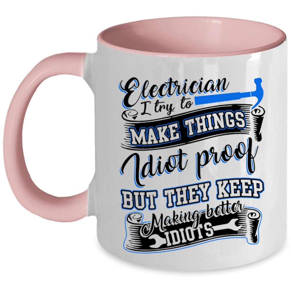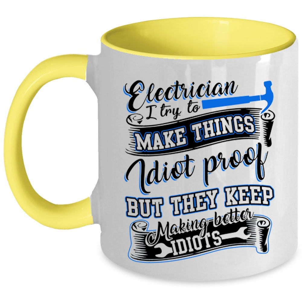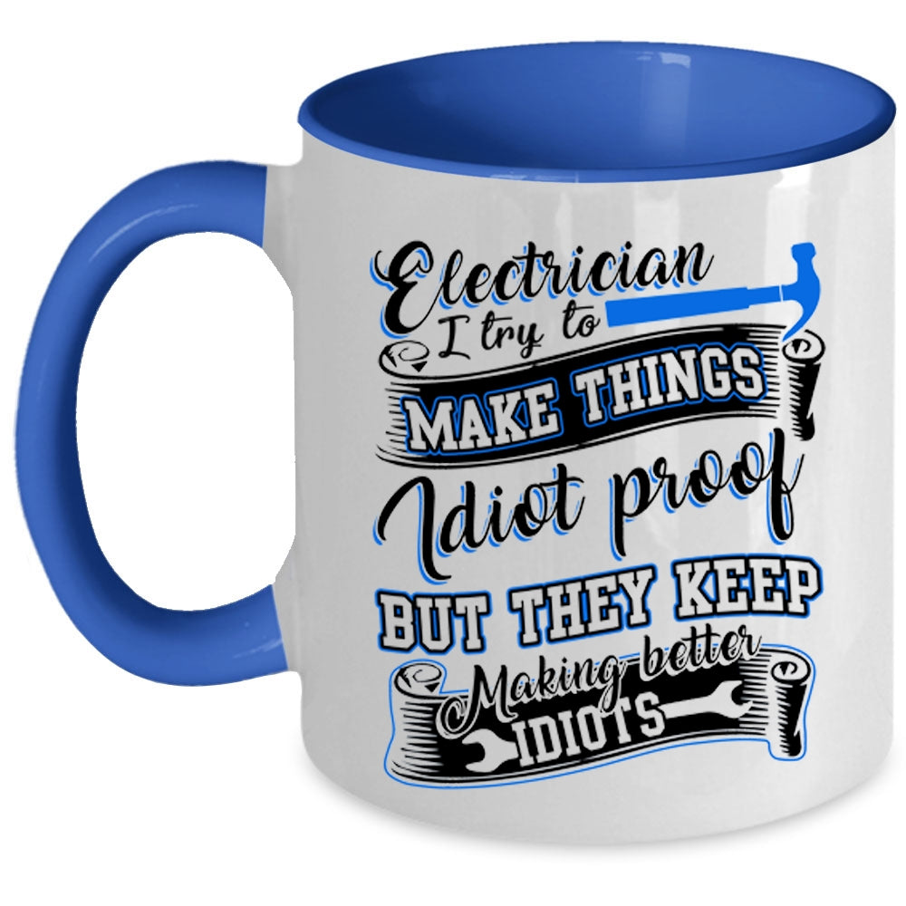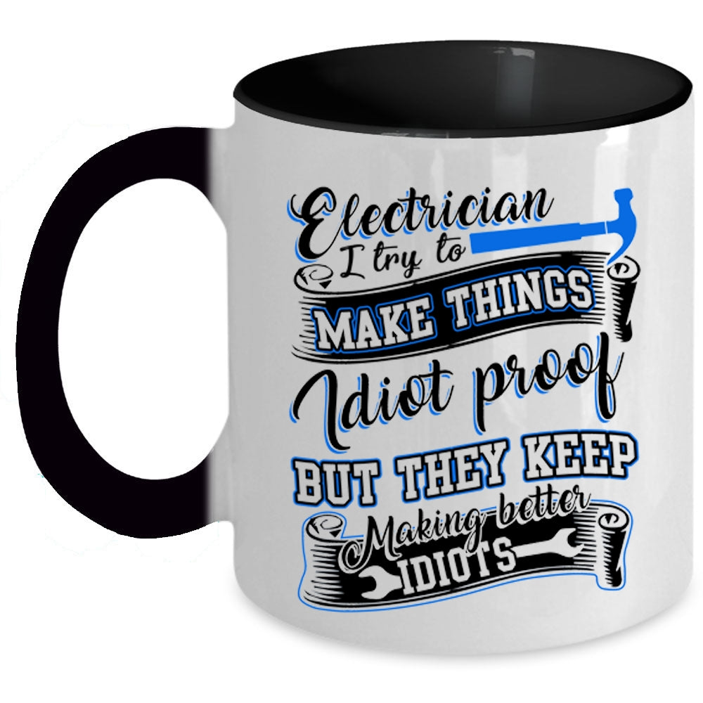 I Try To Make Things Idiot Proof Coffee Mug, Electrician Accent Mug