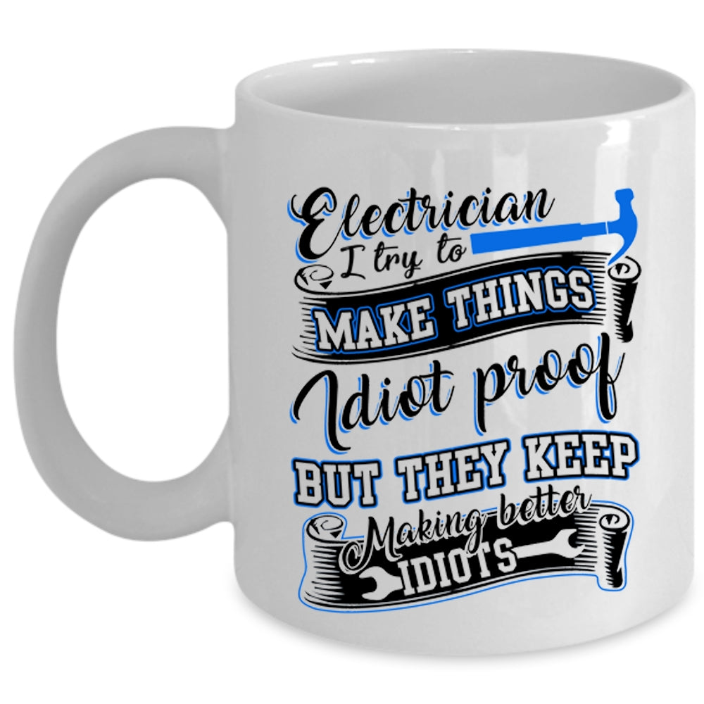 I Try To Make Things Idiot Proof Coffee Mug, Electrician Cup