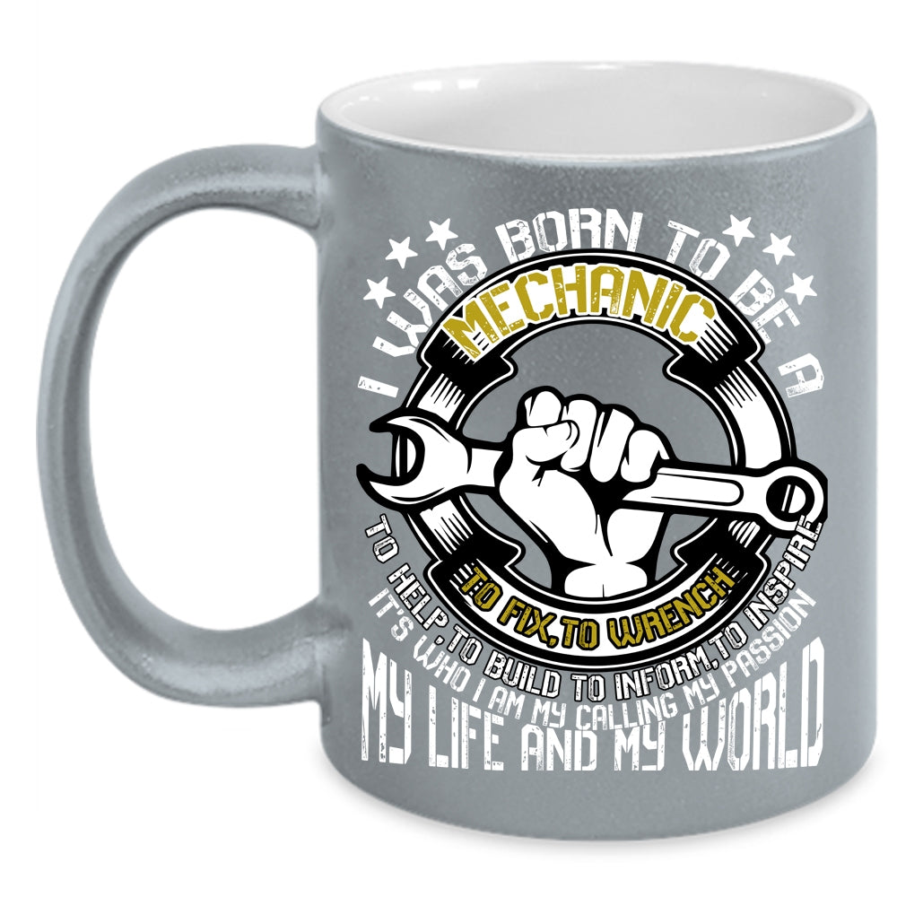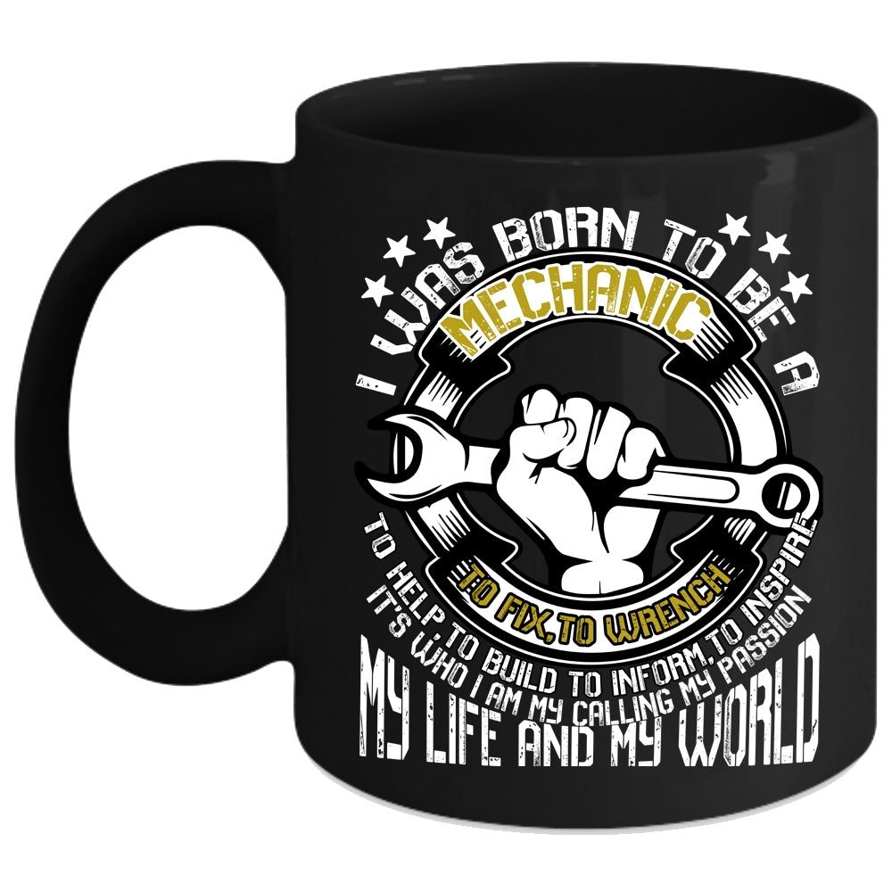 I Was Born To Be A Mechanic Coffee Mug, My Life And My World Coffee Cup