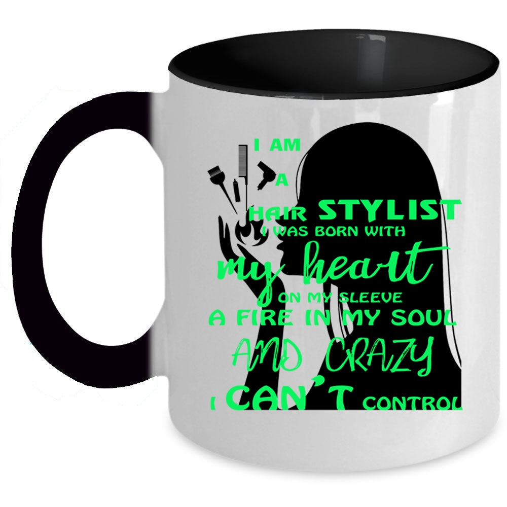I Was Born With My Heart Coffee Mug, I Am A Hair Stylist Accent Mug