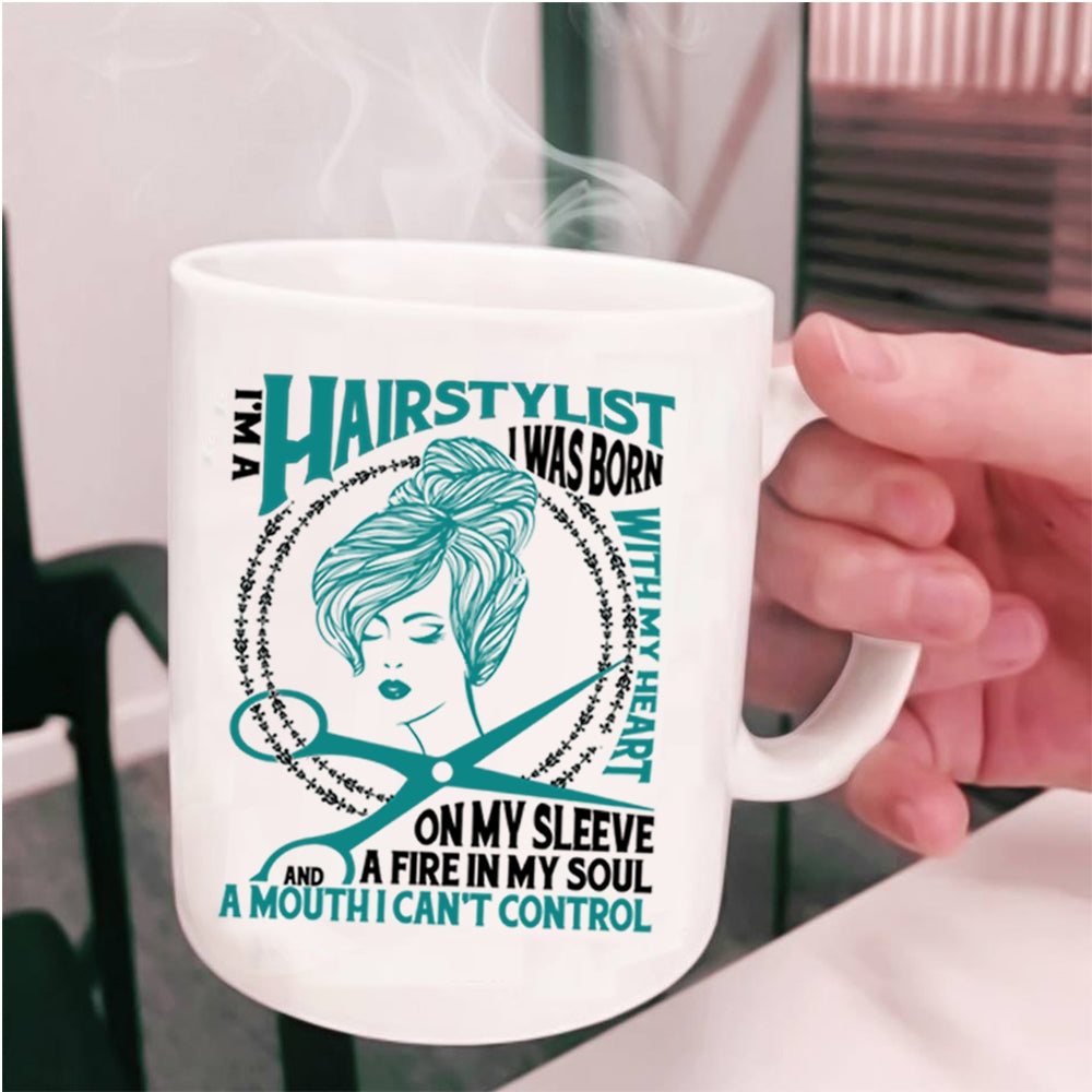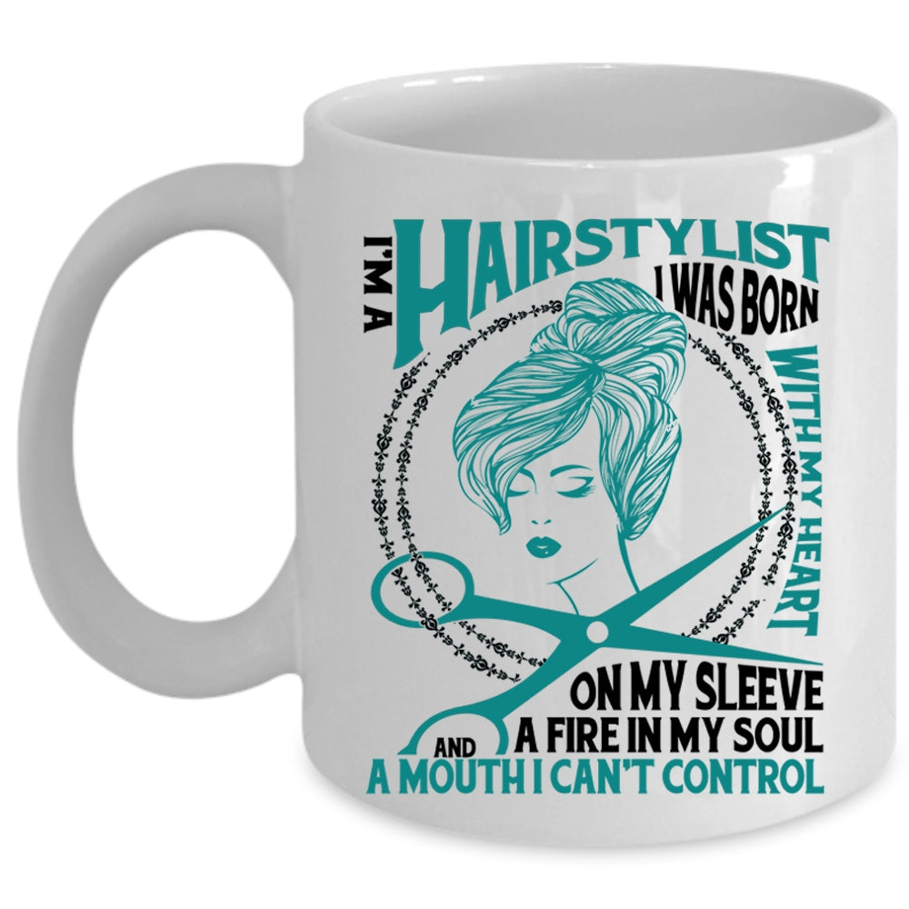I Was Born With My Heart Coffee Mug, I Am A Hairstylist Cup