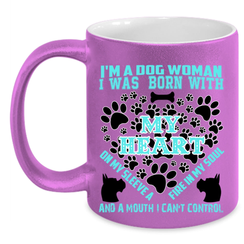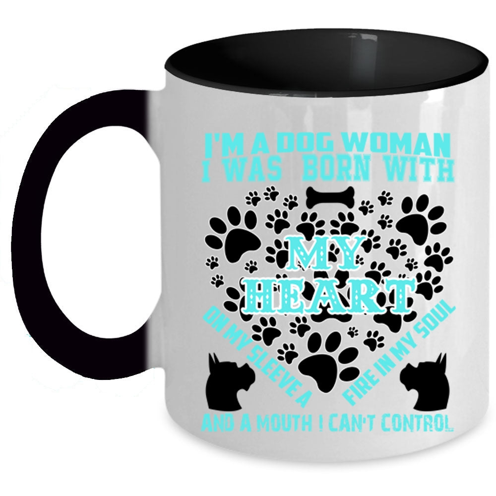 I Was Born With My Heart Coffee Mug, I'm A Dog Woman Accent Mug