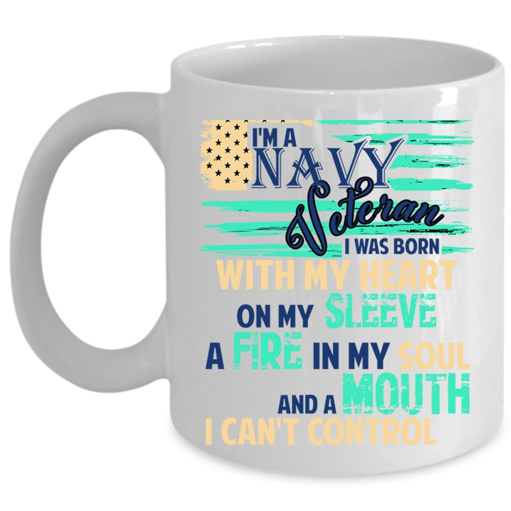 I Was Born With My Heart On My Sleeve Coffee Mug, I'm A Navy Veteran Cup