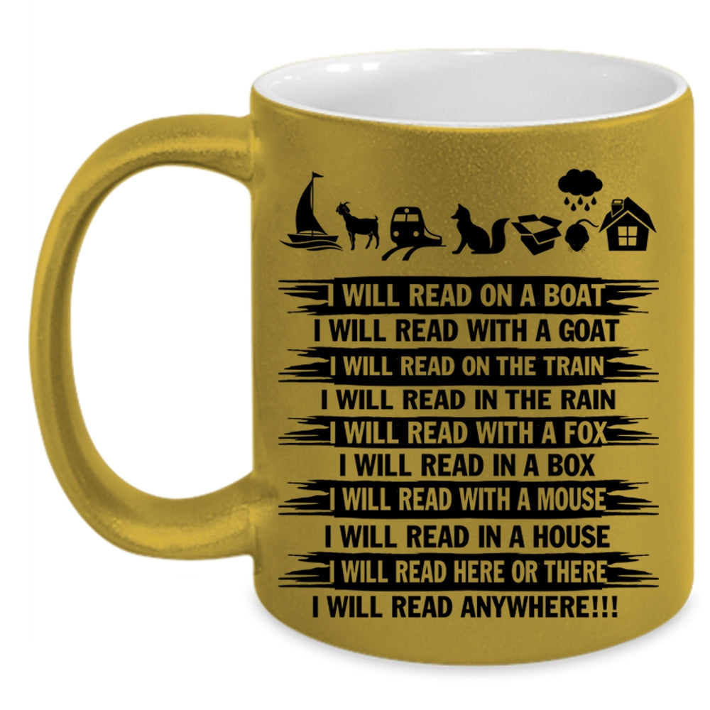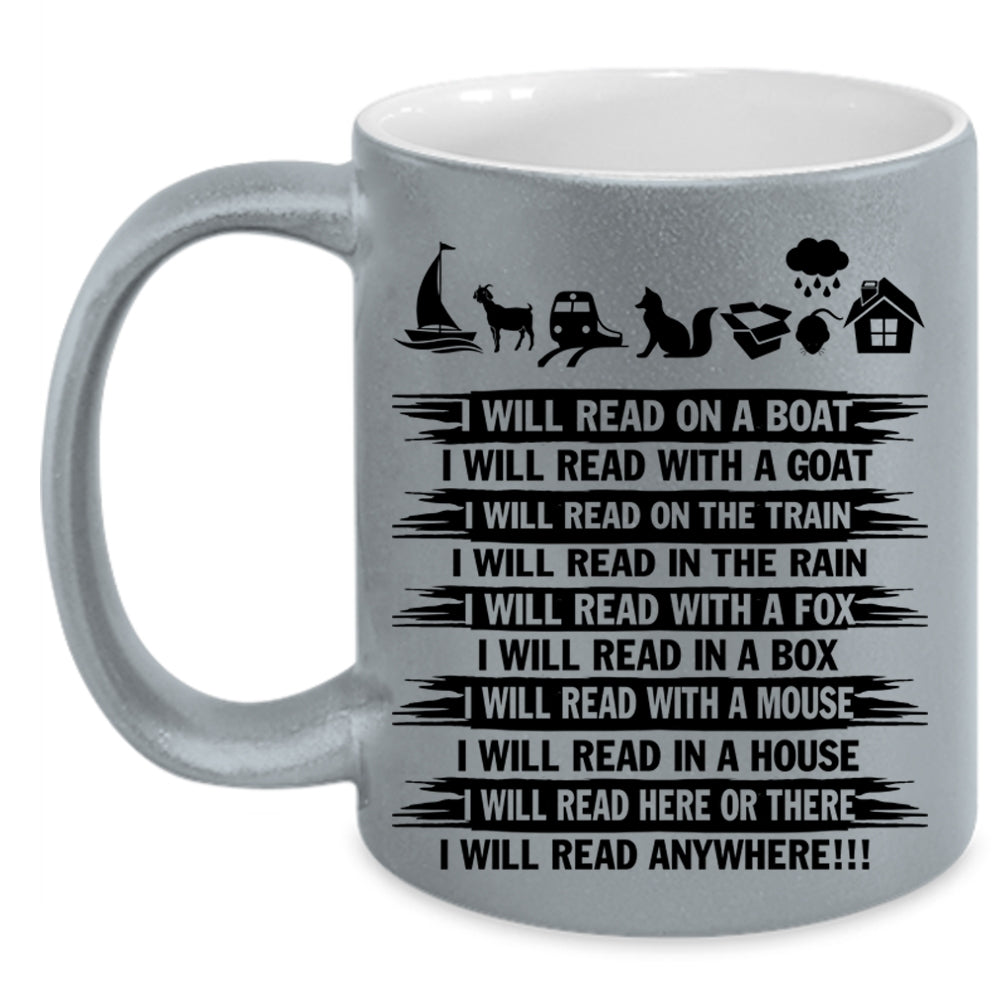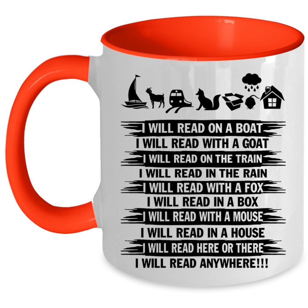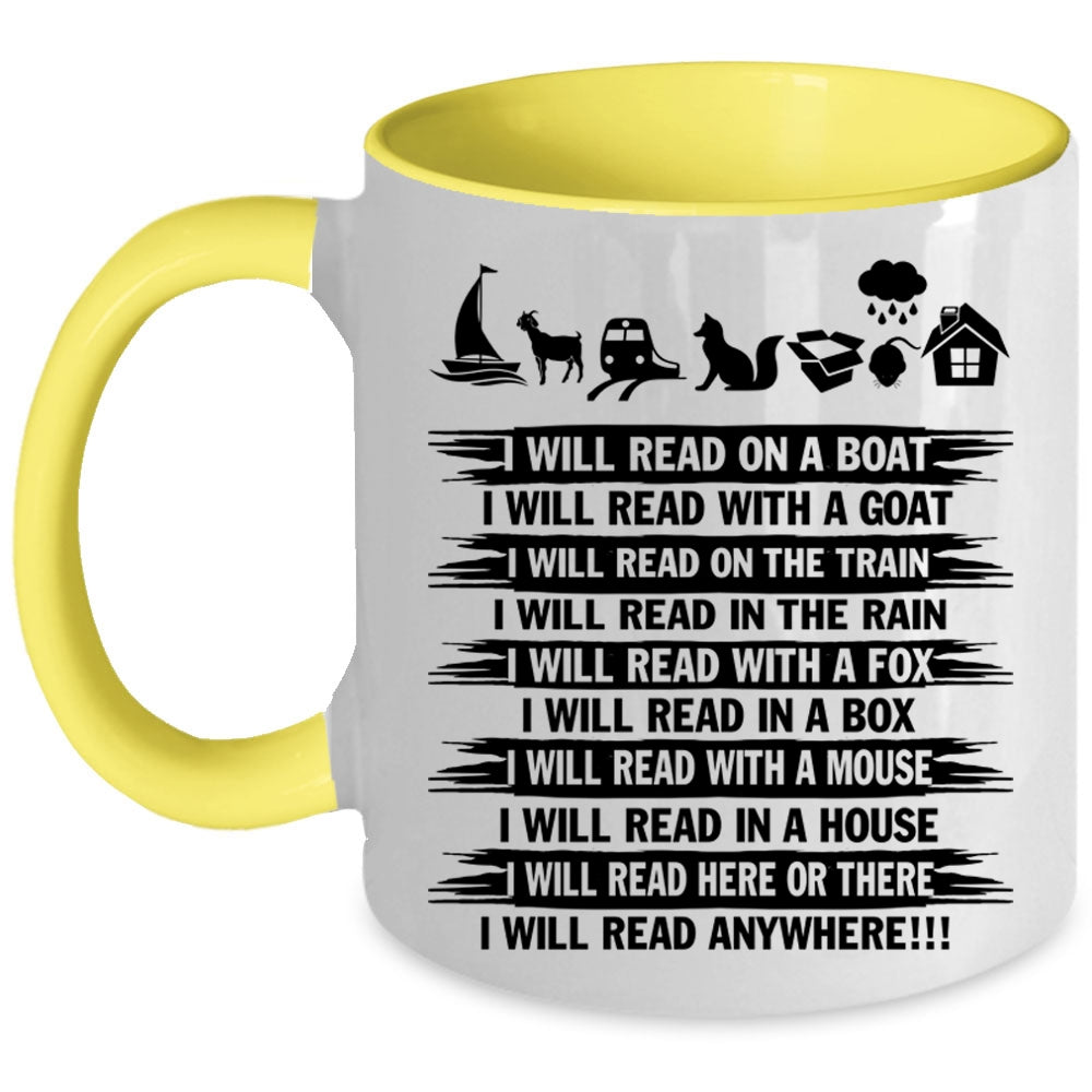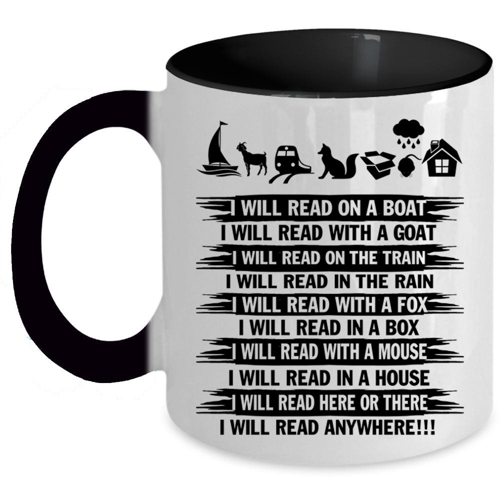 I Will Read Anywhere Coffee Mug, I Will Read On A Boat Accent Mug