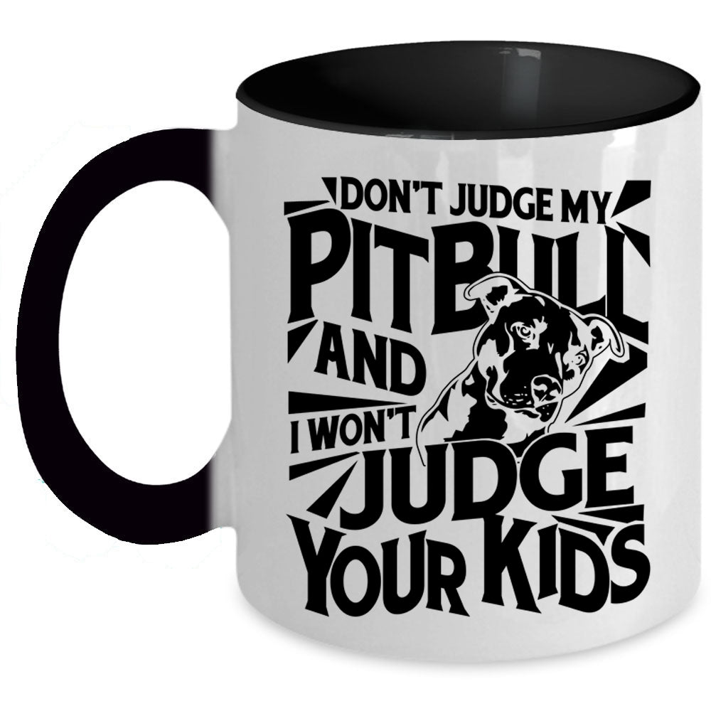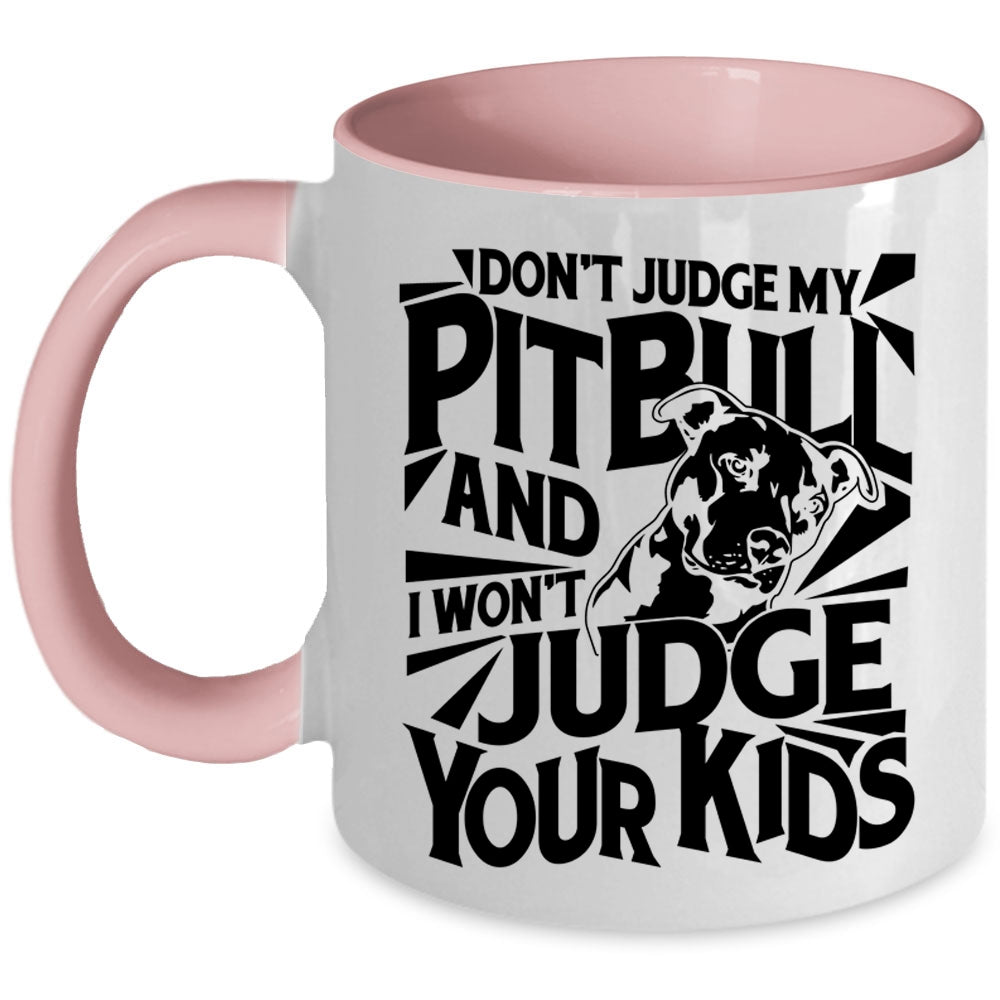 I Won't Judge Your Kids Coffee Mug, Don't Judge My Pitbull Accent Mug