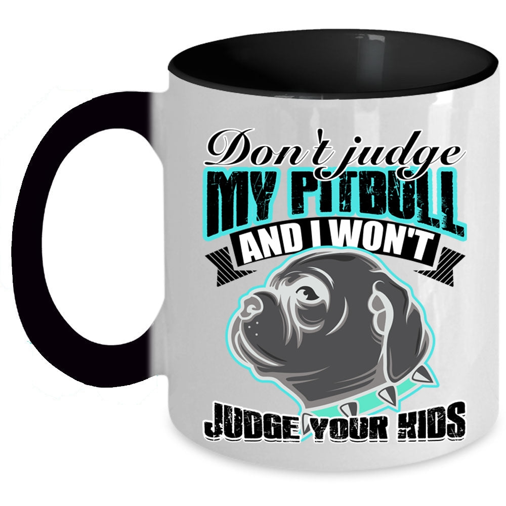I Won't Judge Your Kids Coffee Mug, Don't Jundge My Pitbull Accent Mug