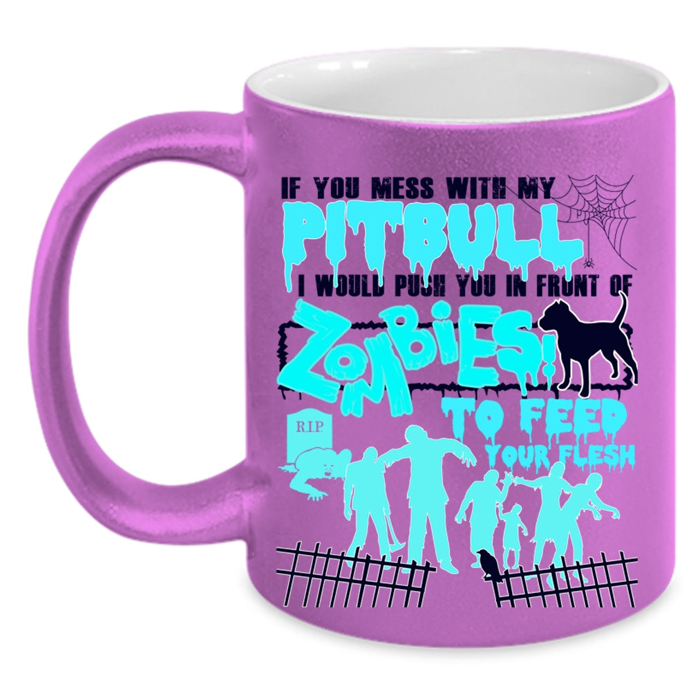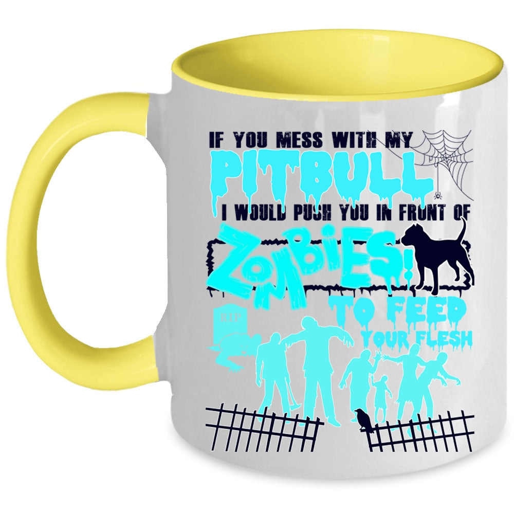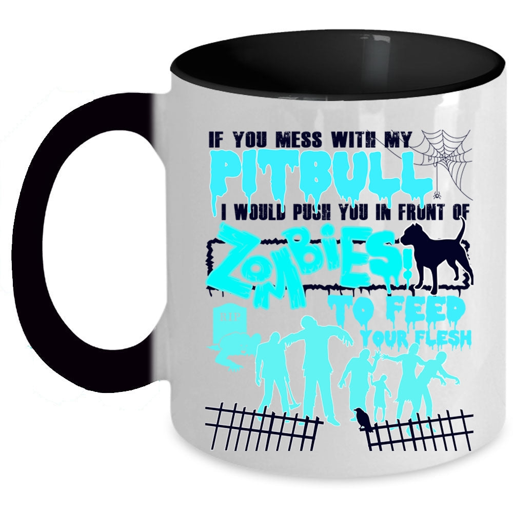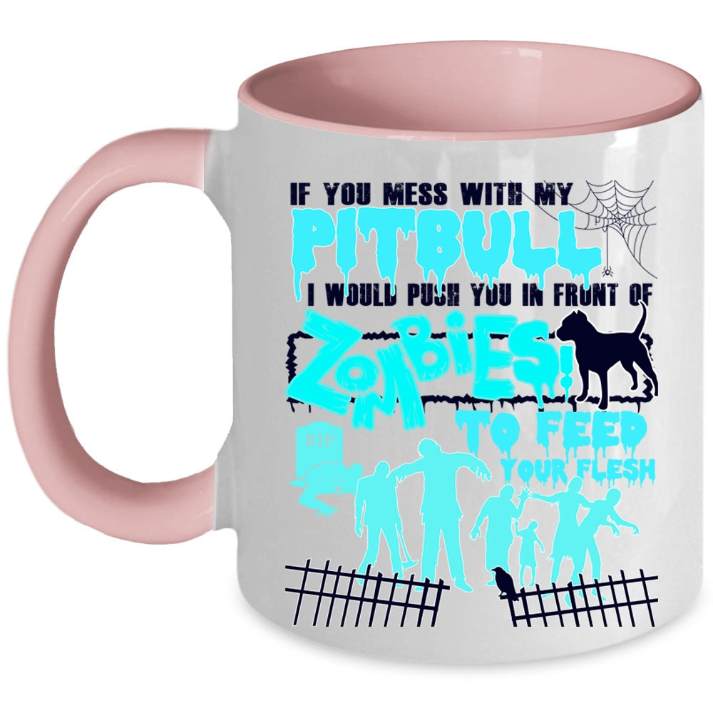 I Would Push You In Front Of Zombies Coffee Mug, Don't Mess With My Pitbull Accent Mug