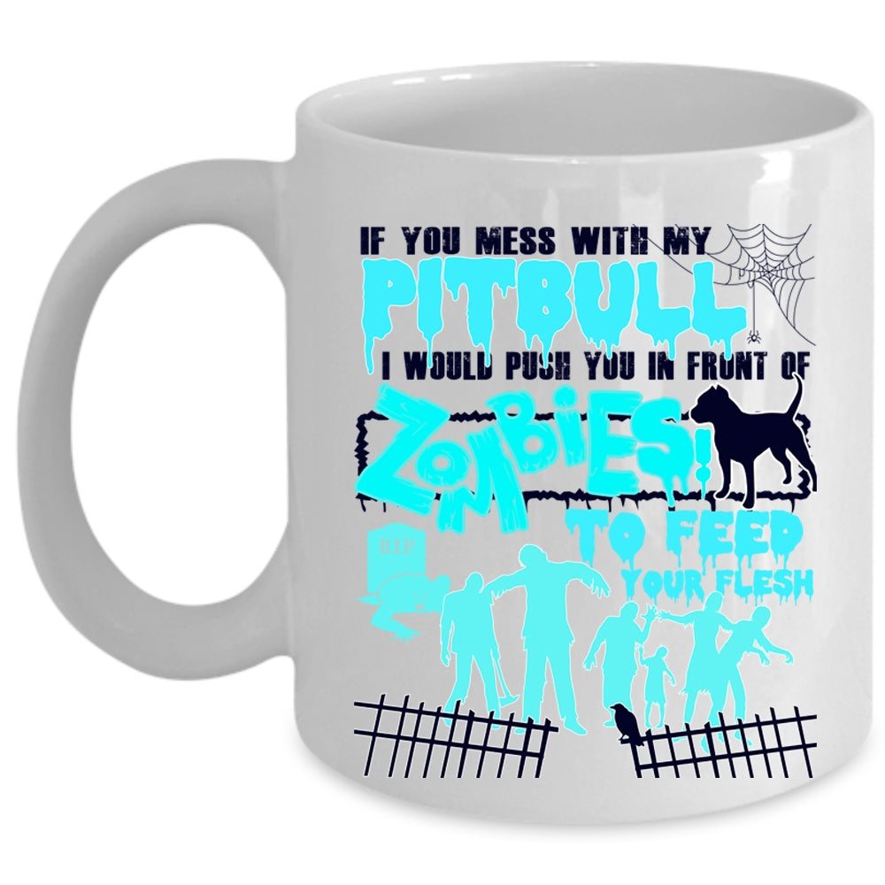 I Would Push You In Front Of Zombies Coffee Mug, Don't Mess With My Pitbull Cup