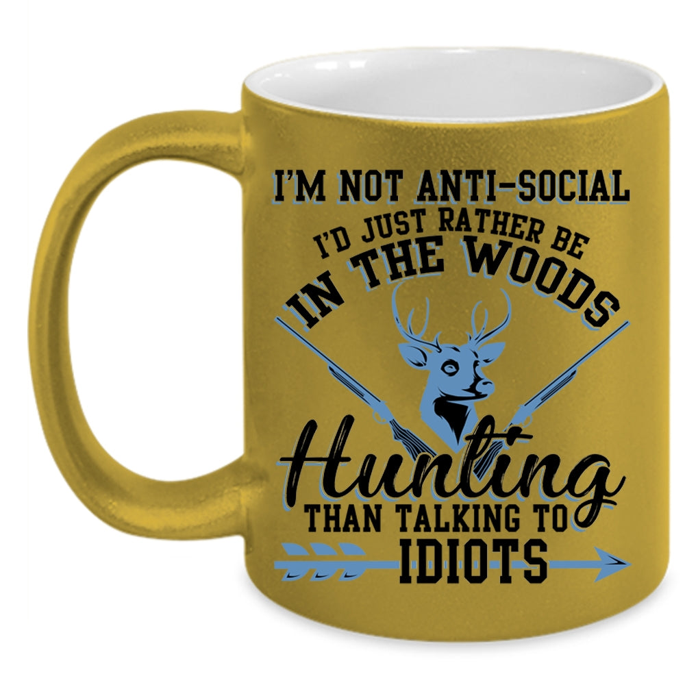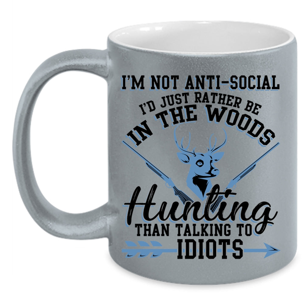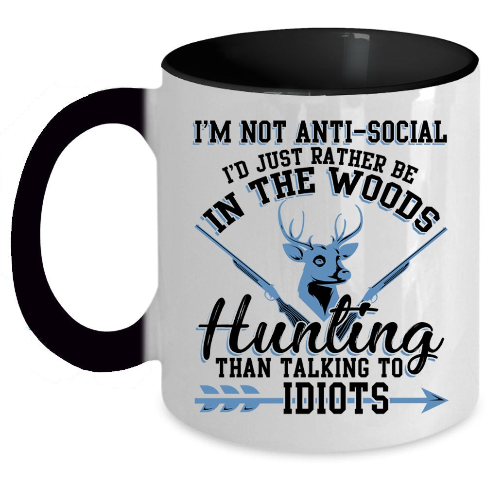 I'd Just Be In the Woods Hunting Coffee Mug, I'm Not Anti Social Accent Mug