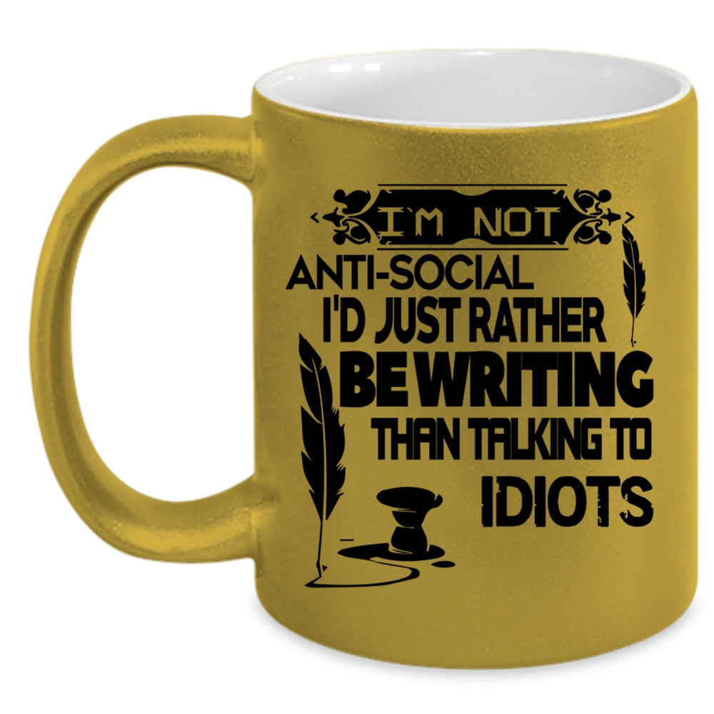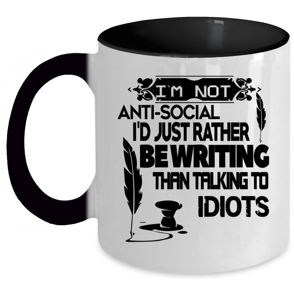 I'd Just Rather Be Writing Coffee Mug, I'm Not Anti Social Accent Mug