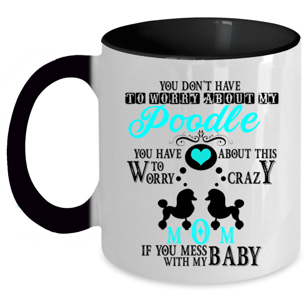 If You Mess With My Baby Coffee Mug, Crazy Poodle Mom Accent Mug