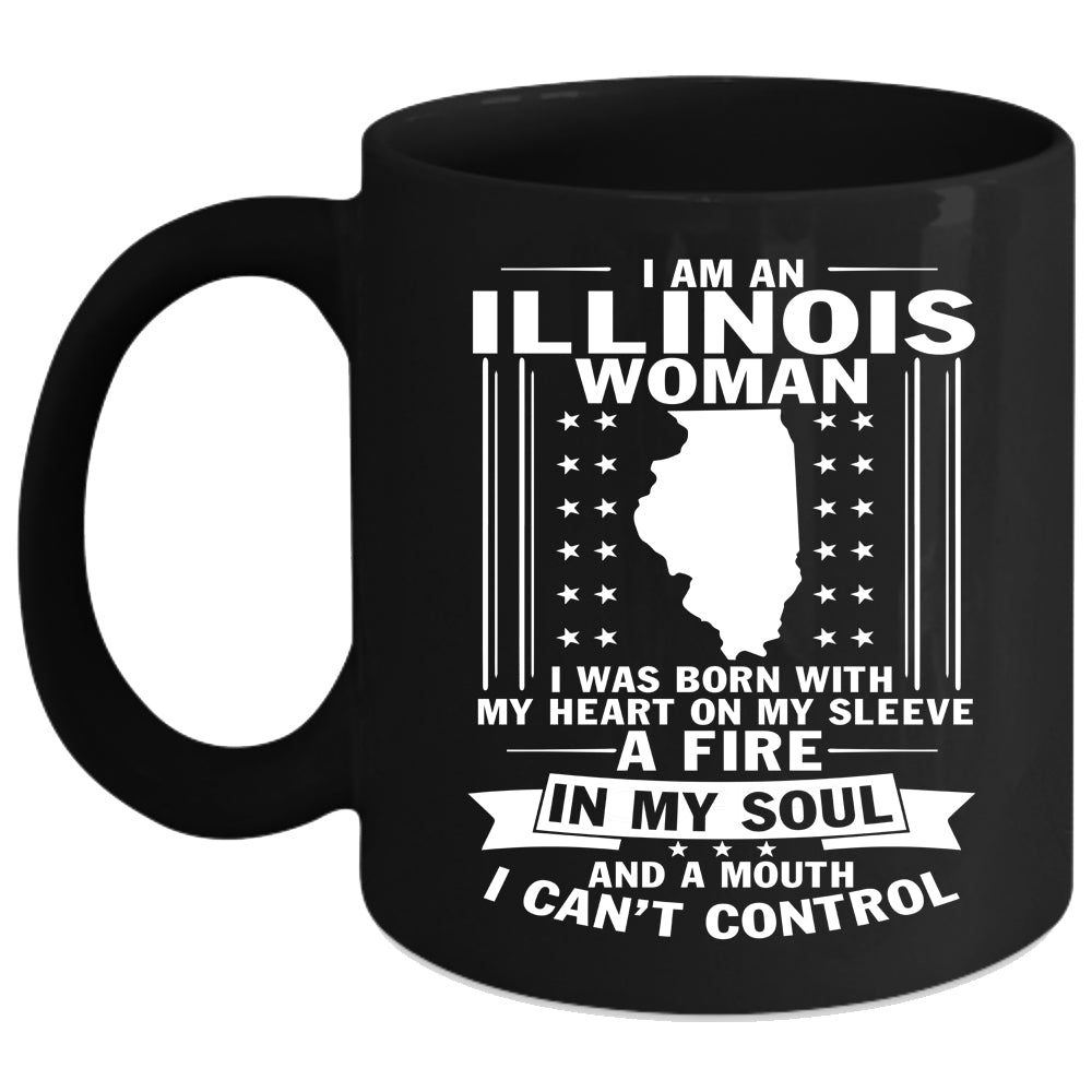 Illinois Woman Coffee Mug, I Was Born With My Heart On My Sleeve Coffee Cup