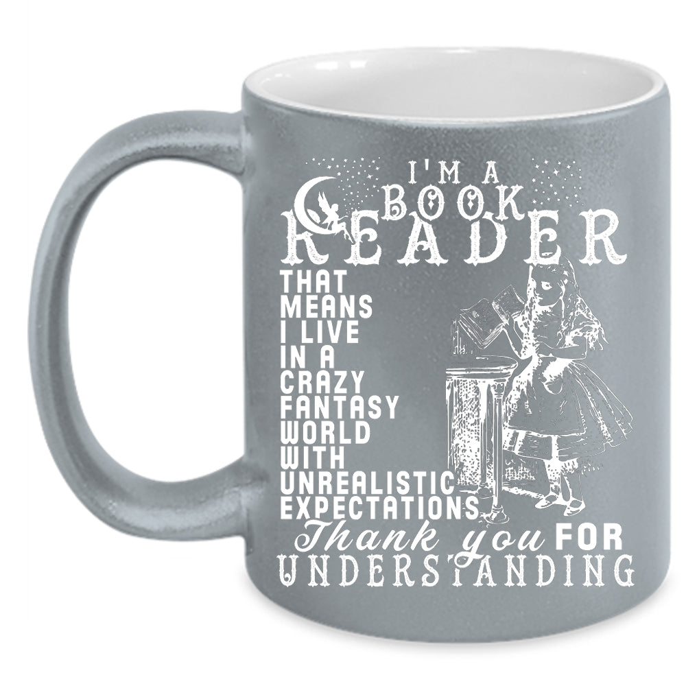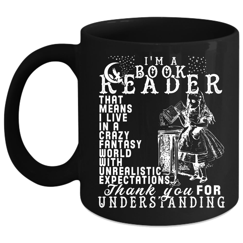 I'm A Book Reader Coffee Mug, I Live In A Crazy Fantasy World Coffee Cup