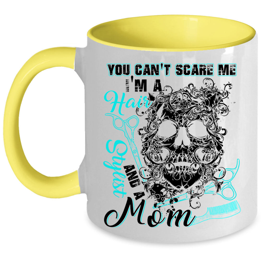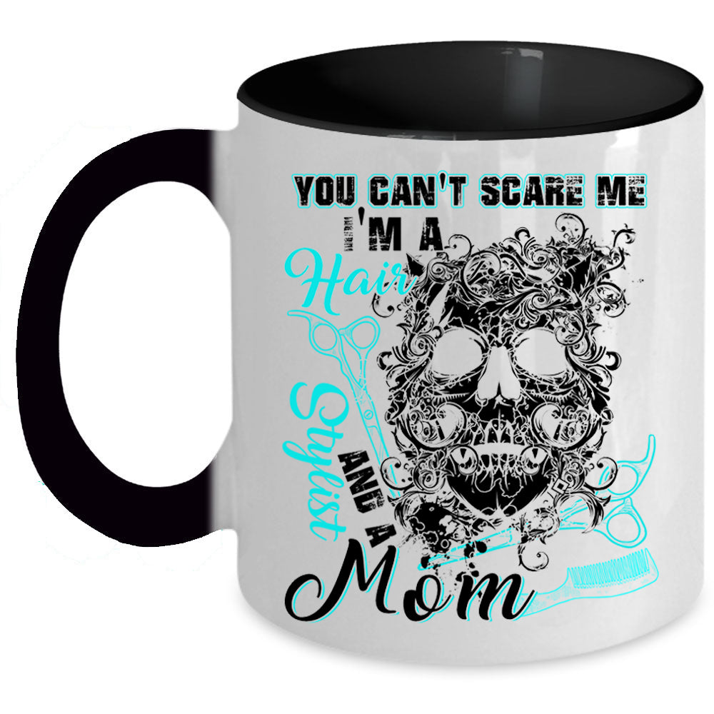I'm A Hair Stylist And A Mom Coffee Mug, You Can't Scare Me Accent Mug