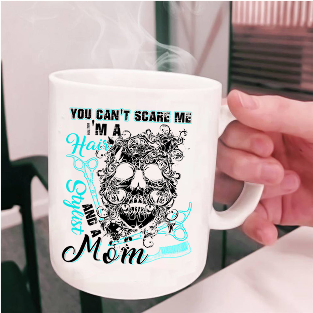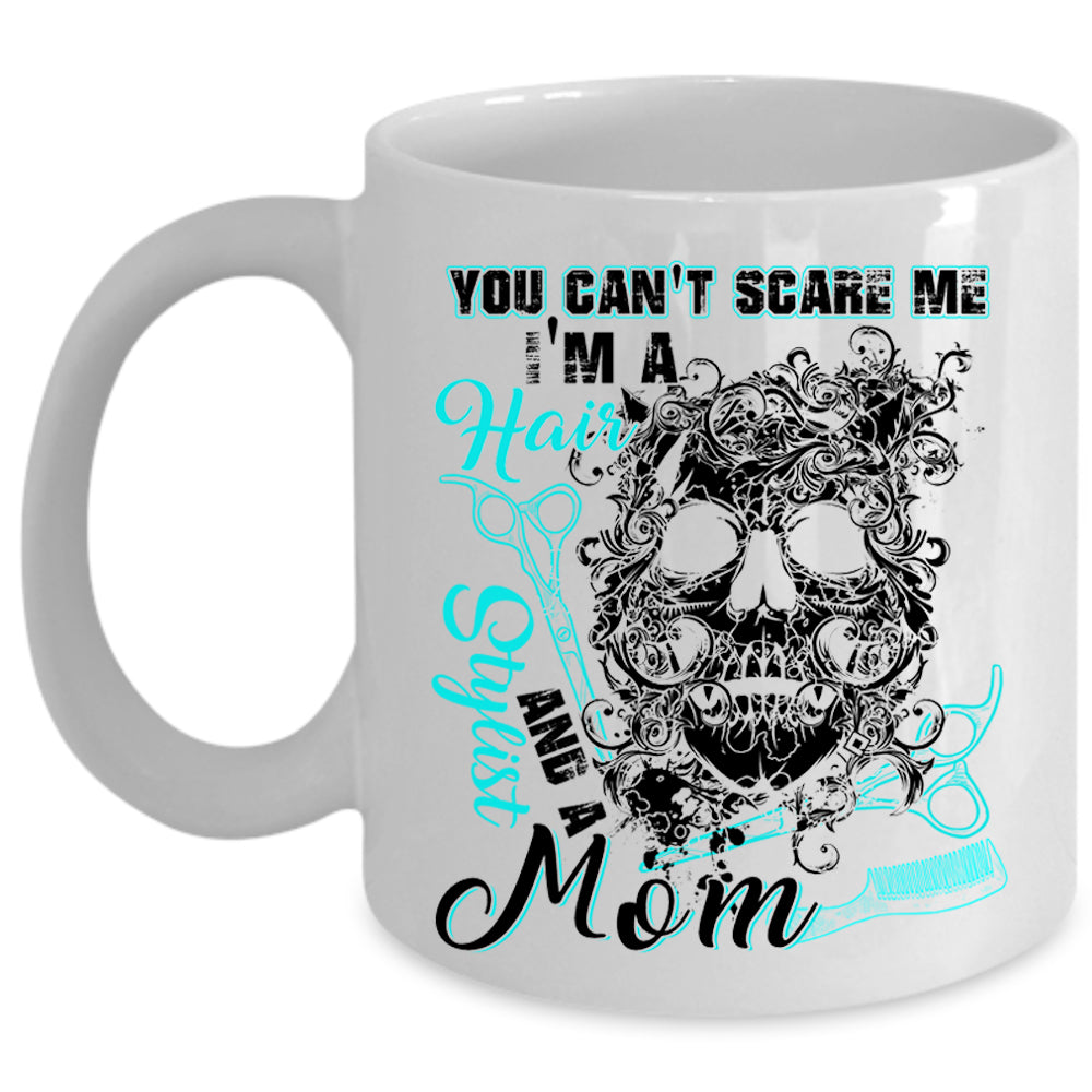 I'm A Hair Stylist And A Mom Coffee Mug, You Can't Scare Me Cup