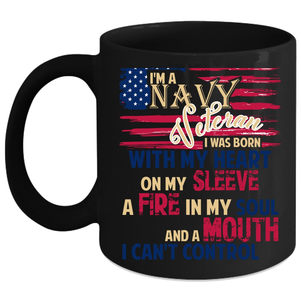 I'm A Navy Veteran Coffee Mug, I Was Born With My Heart On My Sleeve Coffee Cup
