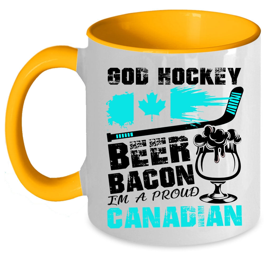 I'm A Proud Canadian Coffee Mug, Hockey Beer Bacon Accent Mug