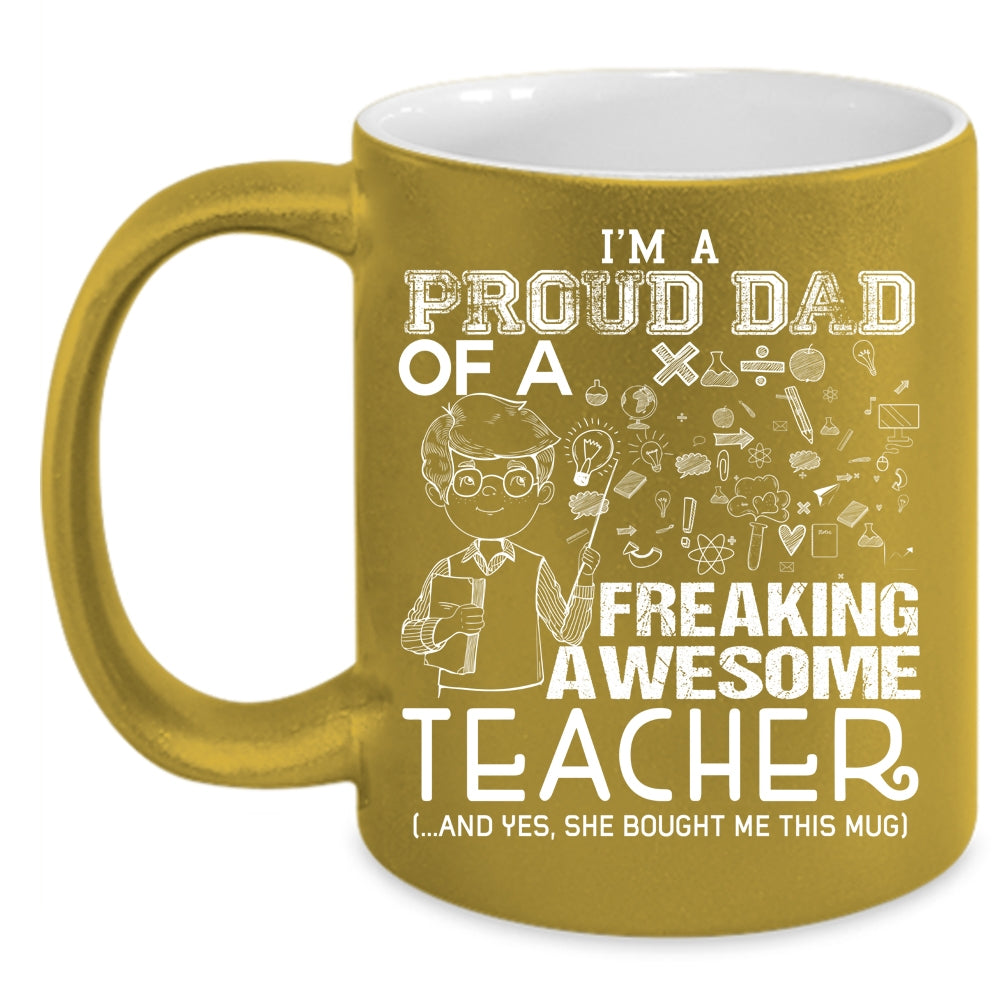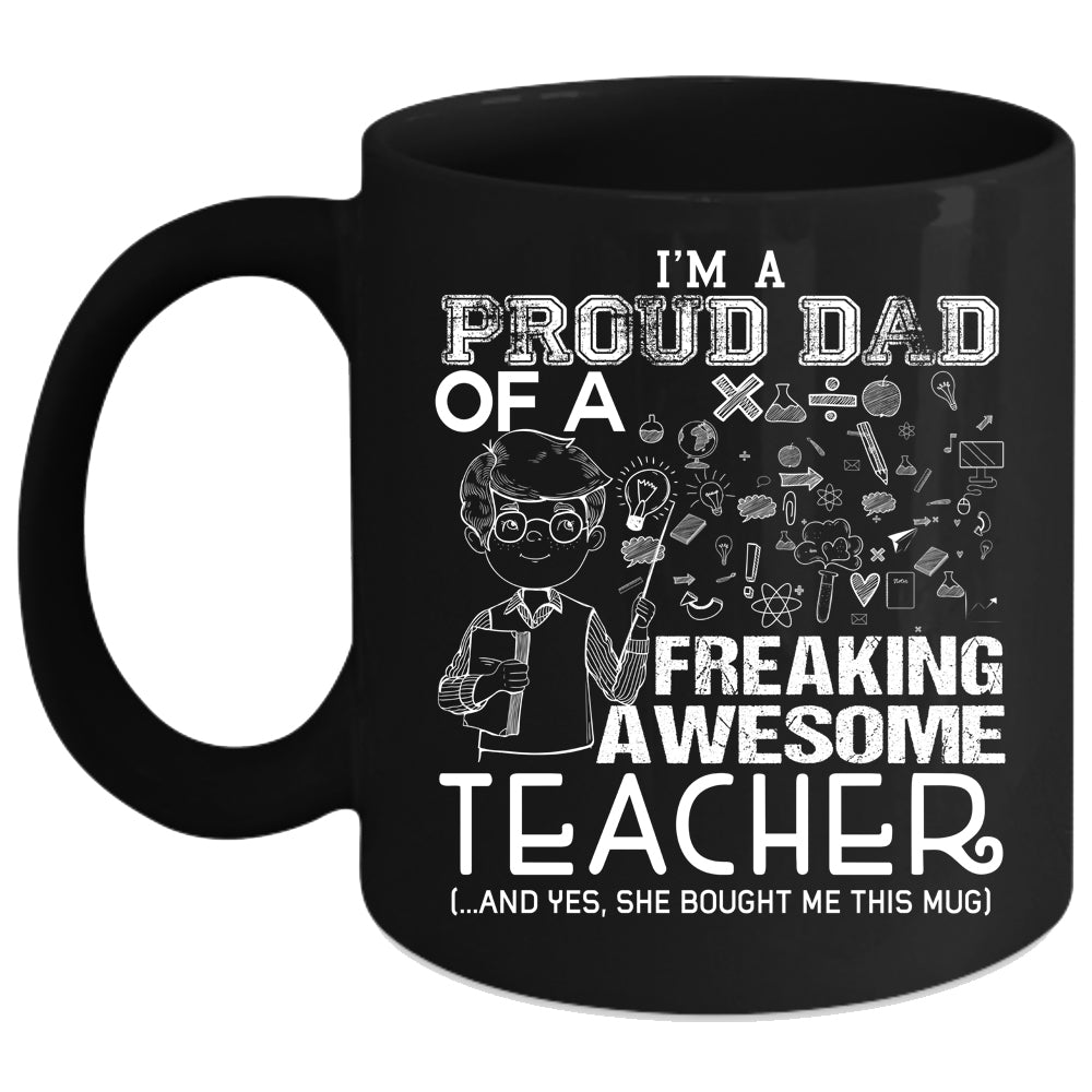 I'm A Proud Dad Of An Awesome Teacher Coffee Mug, Funny Teacher Coffee Cup