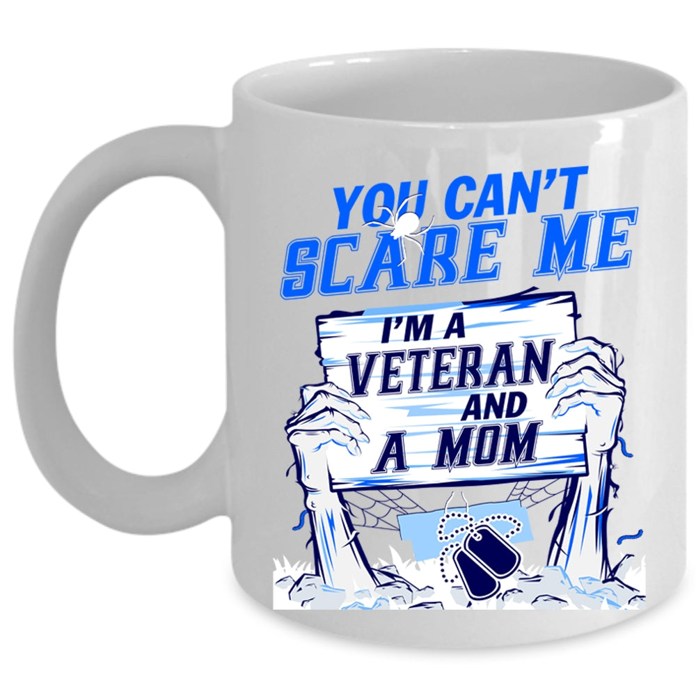 I'm A Veteran And A Mom Coffee Mug, You Can't Scare Me Cup