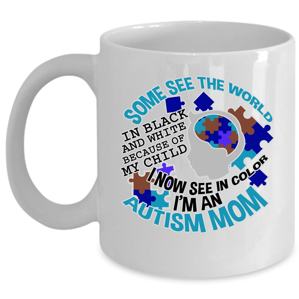 I'm An Autism Mom Coffee Mug, Some See The World In Black And White Cup